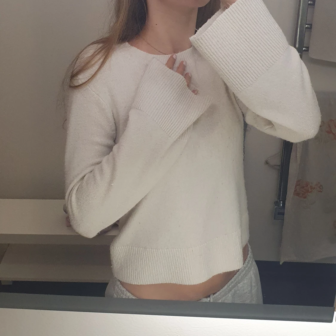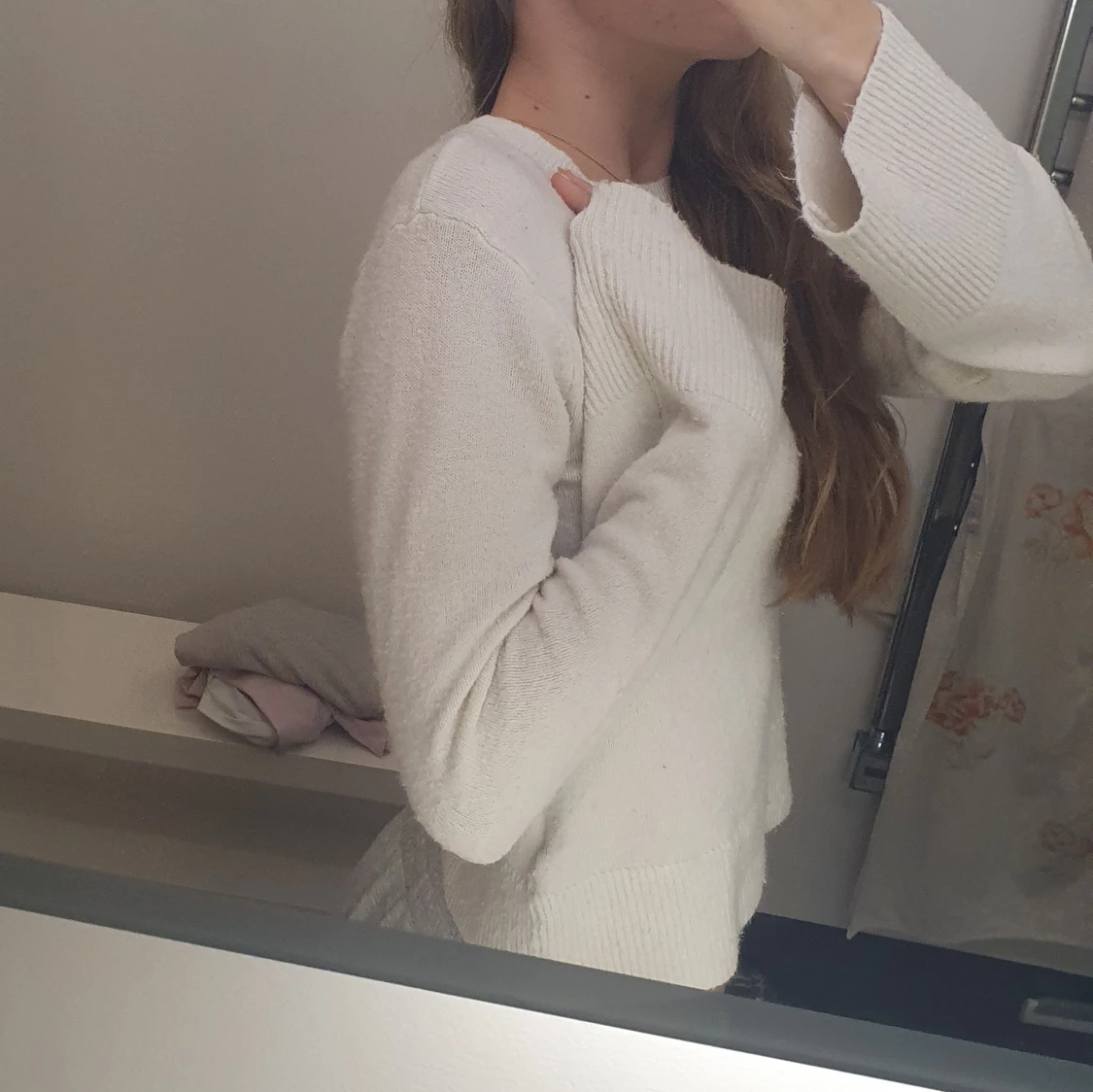 Vit stickad tröja i bra men använt skick(lite noppig), säljer då jag har flera liknande. Storlek M men sitter som s. Pris går att diskutera💕