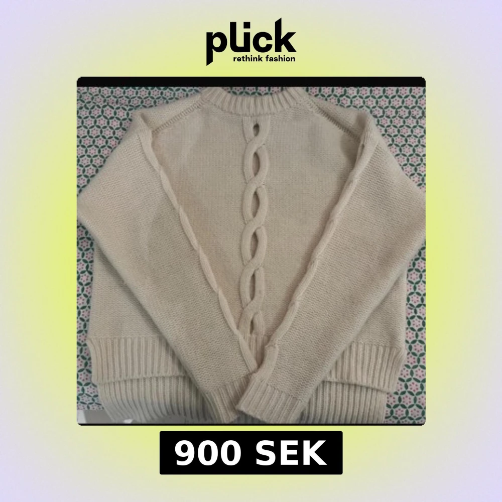 Superfin beige stickad tröja från Filippa K med grov flätstickning längs ärmar och mitt fram