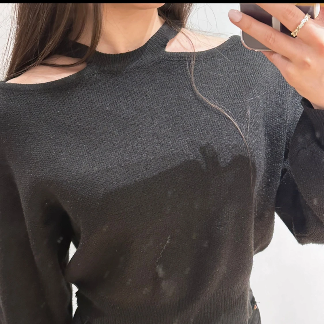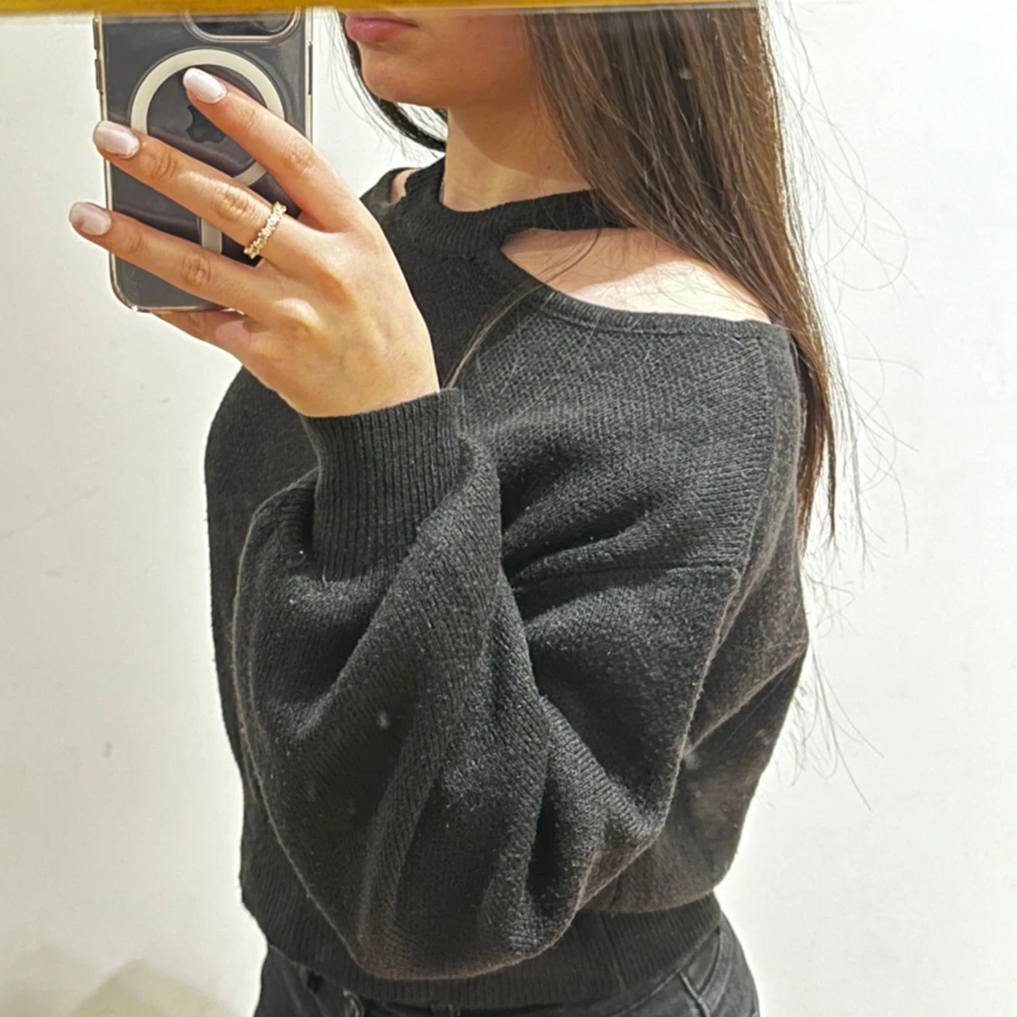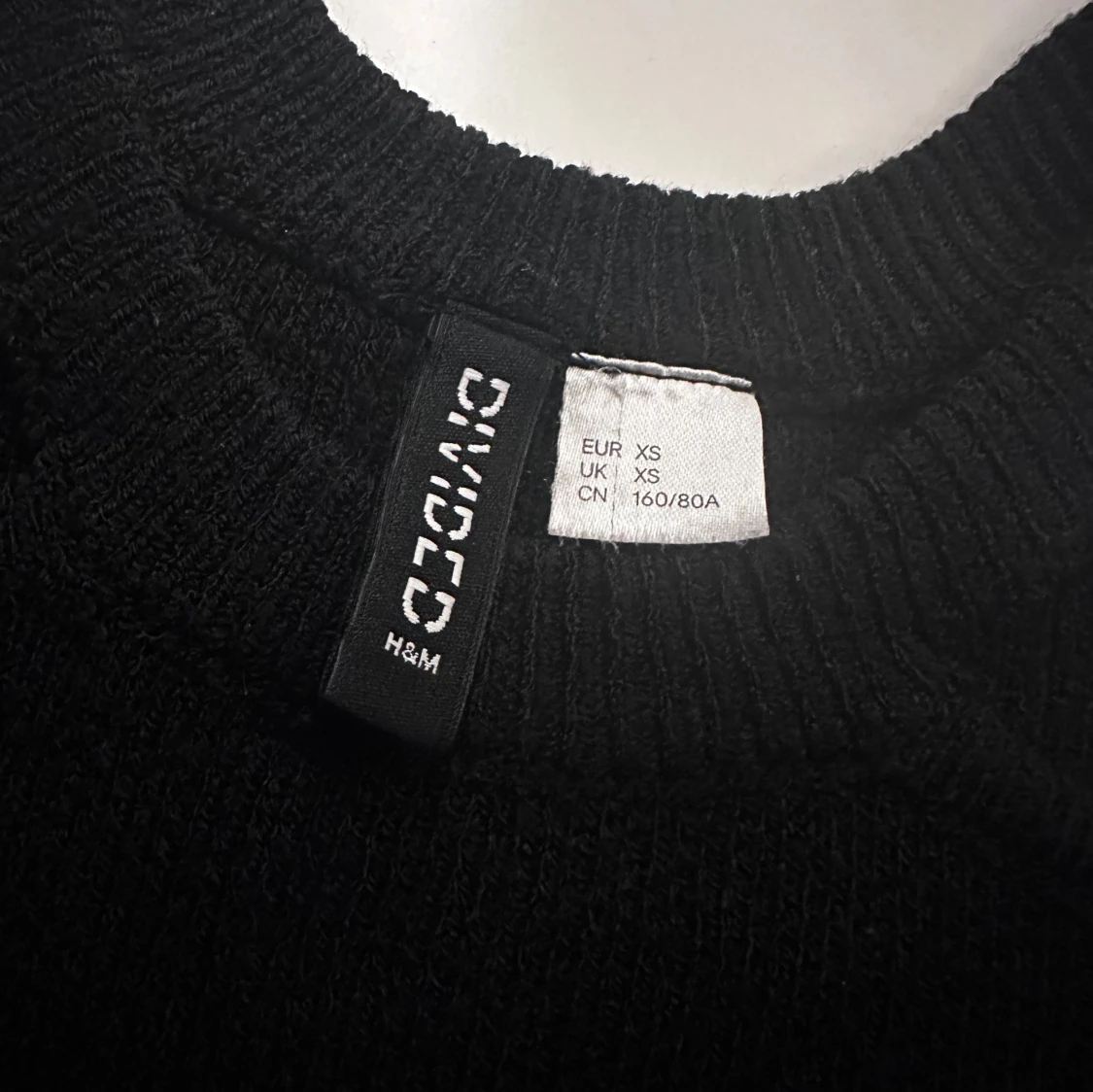 Svart stickad tröja från H&M Divided. Tröjan har en stilren design med långa ärmar och en ribbad kant vid halsen. Pris kan diskuteras!