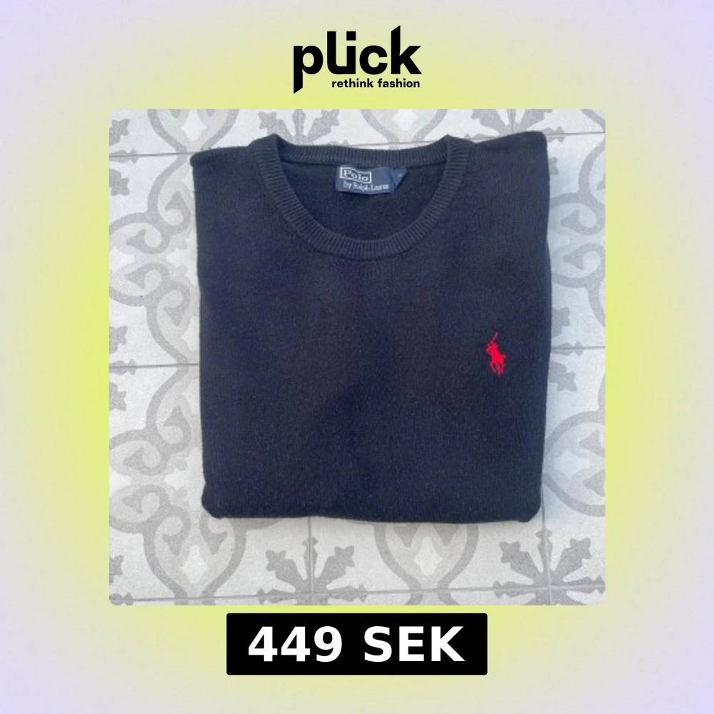 Säljer en stilren svart stickad tröja från Polo Ralph Lauren med det ikoniska röda logotypbroderiet på bröstet. Tröjan har långa ärmar och ribbade muddar vid ärmslut och nederkant. Perfekt för en klassisk look. Den är i storlek L men passar lite mindre. Hör av dig vid det minsta lilla! 🙌🤝