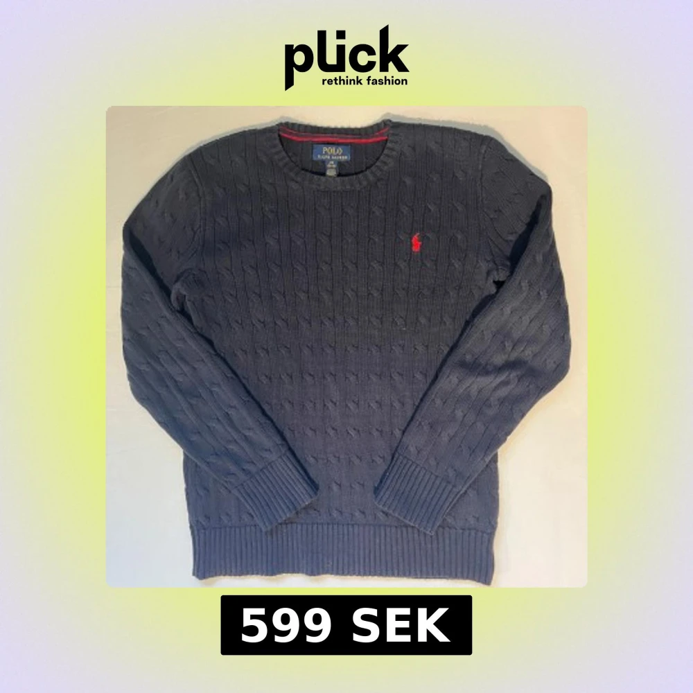 Mörkblå kabelstickad tröja ifrån Ralph Lauren. Storleken 14/16 år vilket passar de som är runt 170 (xs). Skick på den är 9/10 knappt använd. Självklart äkta. Bara höra av sig vid någon fundering. Priset är inte hugget i sten, kom gärna med bud!