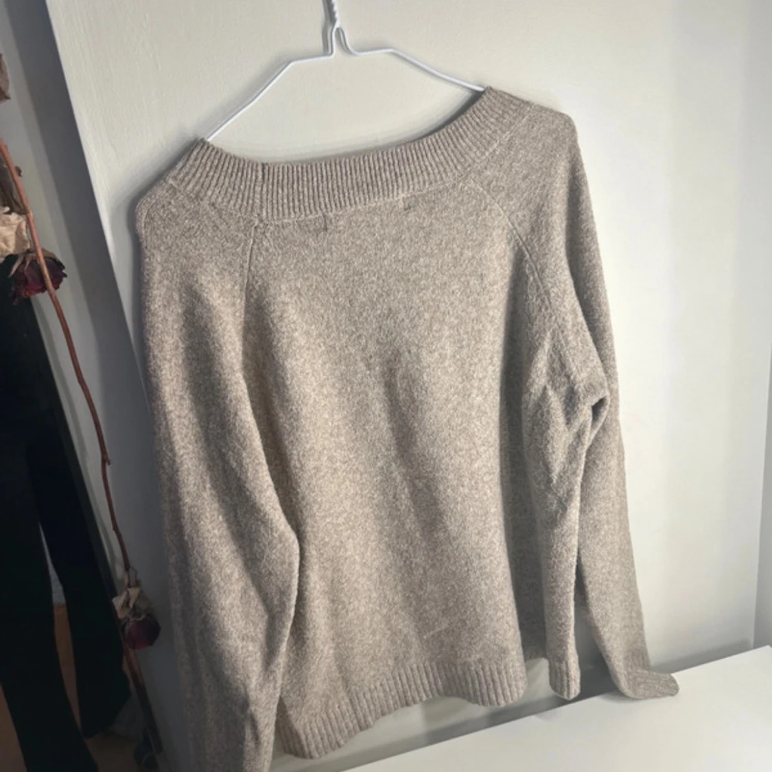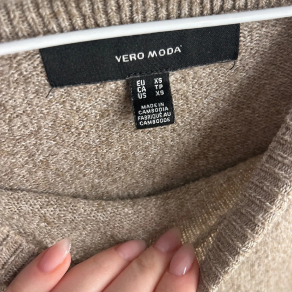 Mysig beige stickad tröja från Vero Moda i storlek XS. Tröjan har en rund halsringning, ribbade muddar och lång ärm.