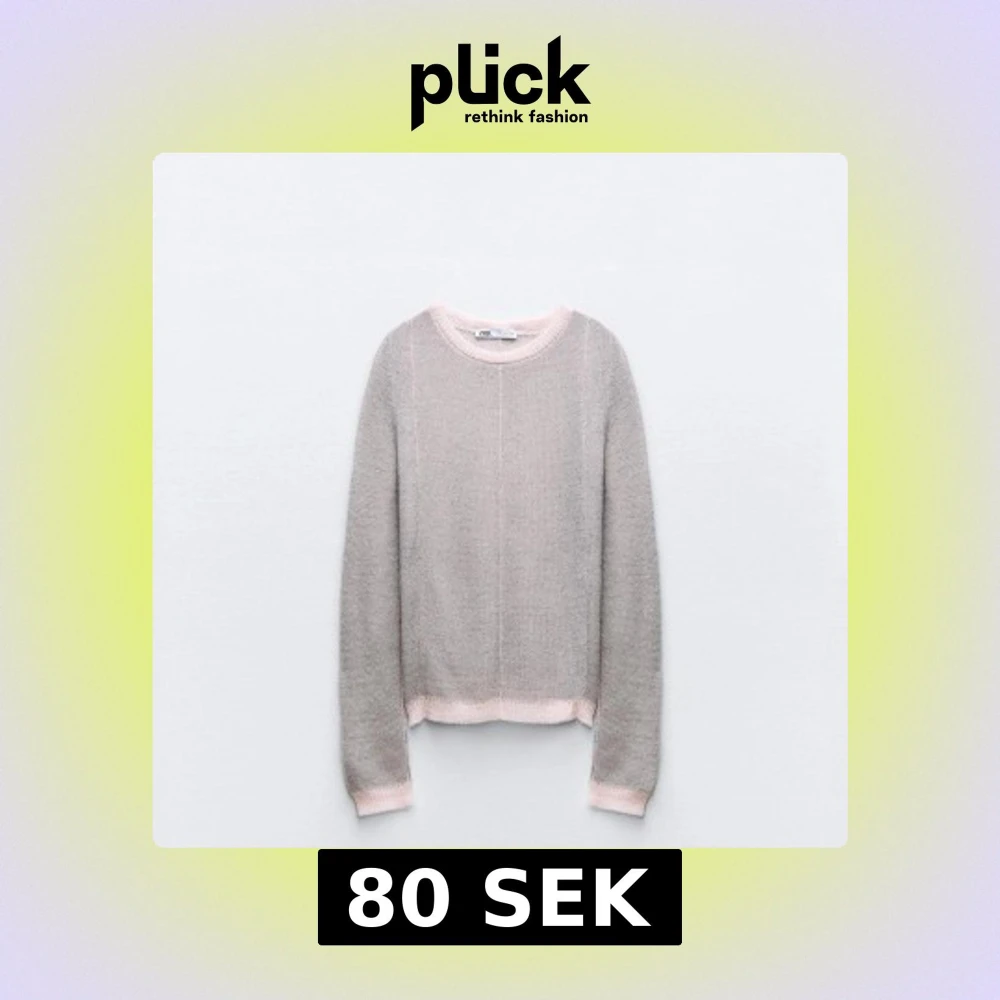 Jätteskön ljusgrå stickad tröja från Zara med ljusrosa ribbade detaljer vid halsringning, ärmslut och nederkant.