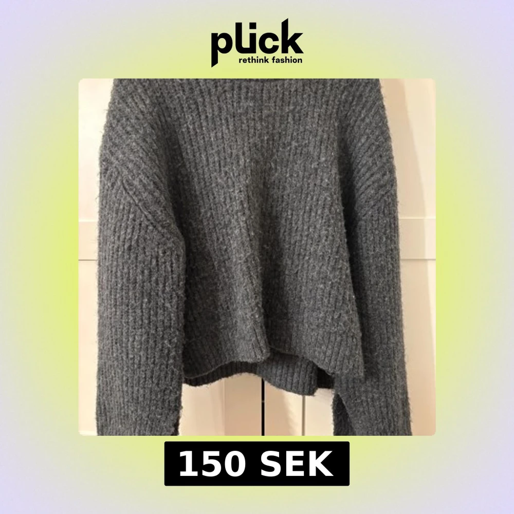 Mysig grå stickad tröja från Gina Tricot i storlek M. Tröjan har en ribbad struktur och långa ärmar, perfekt för kyligare dagar. Enkel och stilren design som passar till det mesta.
