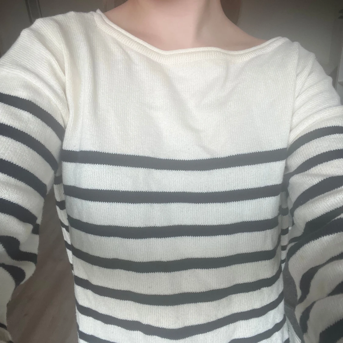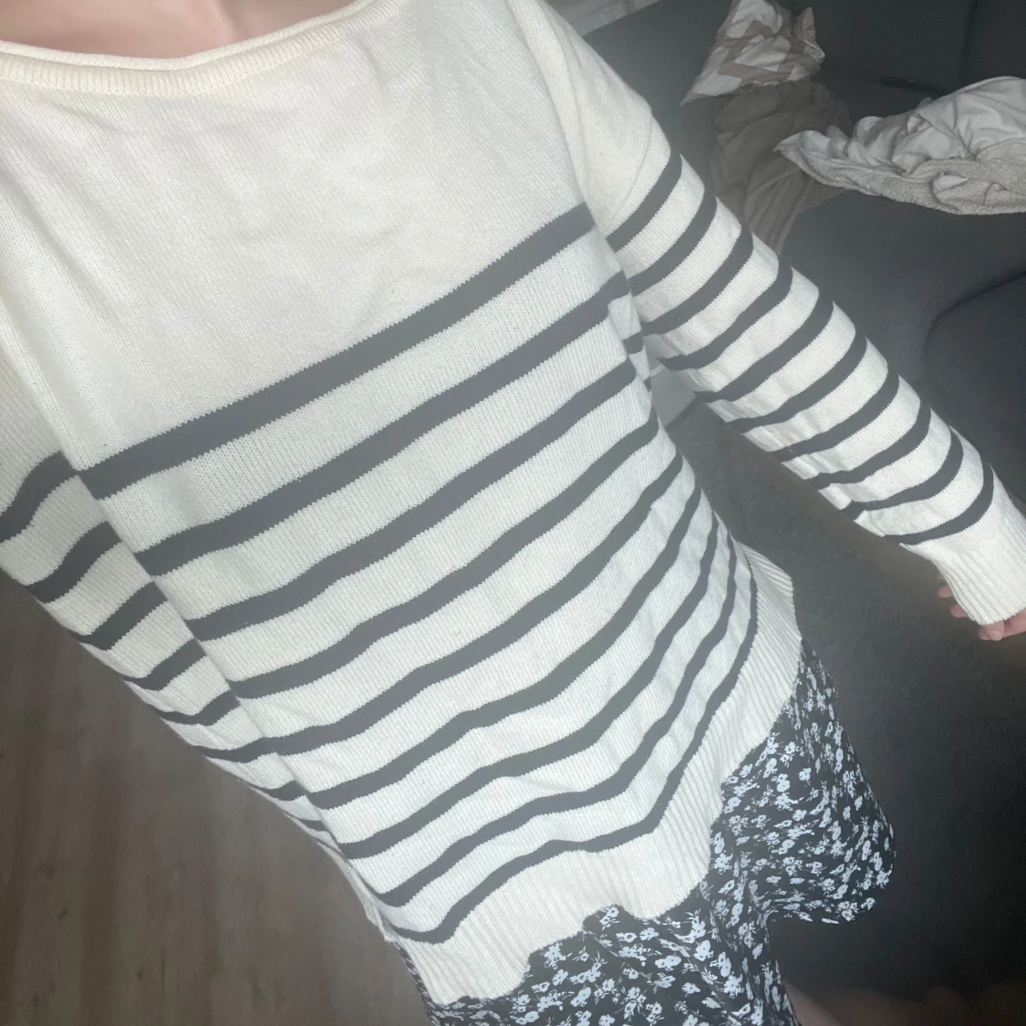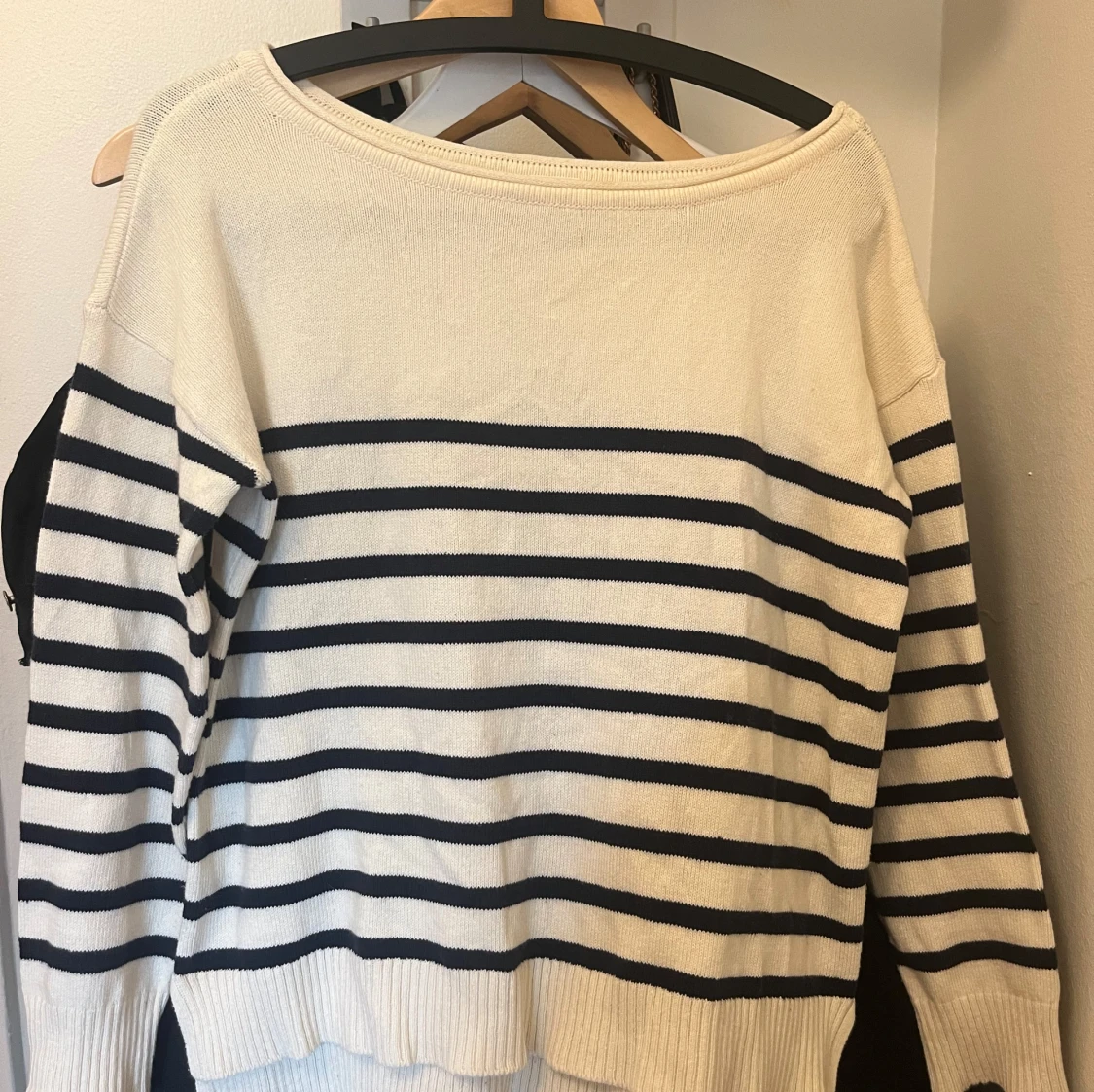 Väldigt fin stickad tröja med randigt mönster och har ett skönt och luftig tyg. Normal i storleken.