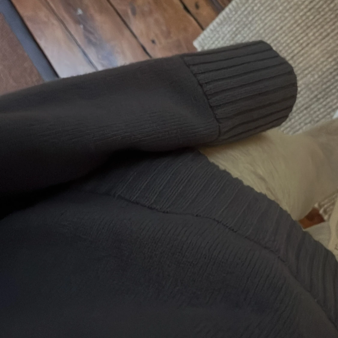 Blå stickad tröja med ribbade detaljer