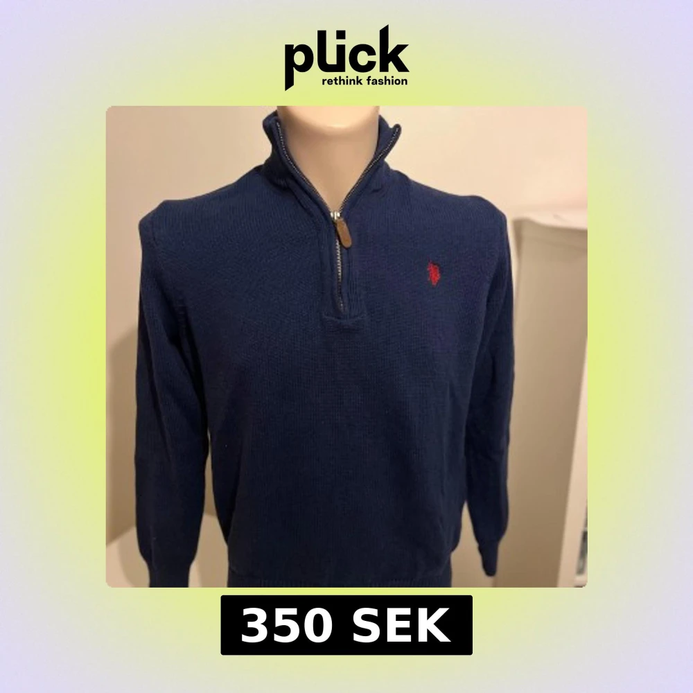 Säljer en stilren mörkblå tröja från U.S. Polo Assn. med dragkedja och broderad logga på bröstet. Tröjan har långa ärmar och en hög krage, perfekt för kyligare dagar. Passar både till vardags och mer uppklädda tillfällen.