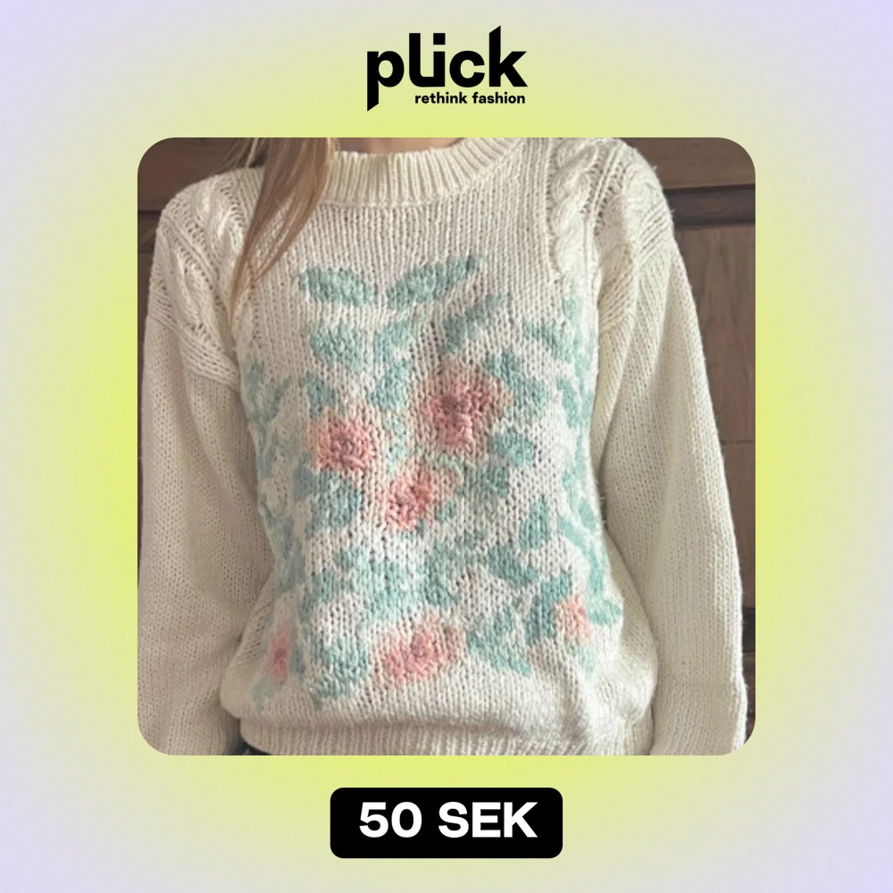 Super fin stickad tröja med blommor på. Tröjan är i fint skick och har bara andvänds ett få antal gånger💕 hals kragen är inte super stretching men går att ta på och av. Hör av er om ni har fler frågor 💕😚
