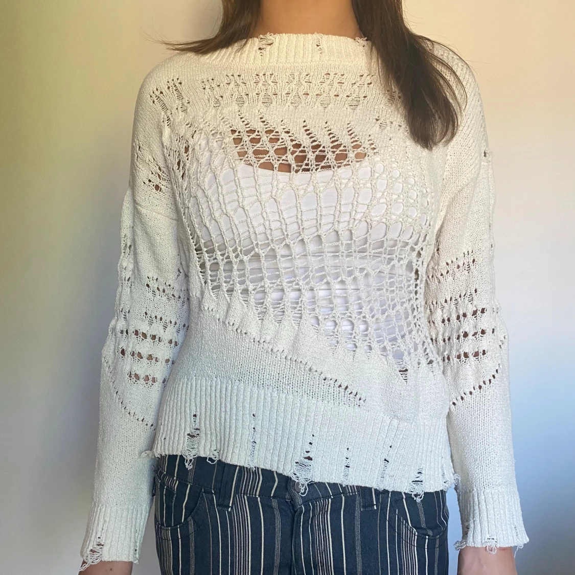 Skit fin tjocktröja från zara med hål lite överallt som är i bra skick men har en liten fläck på axeln som knappt syns. Annars bra skick.