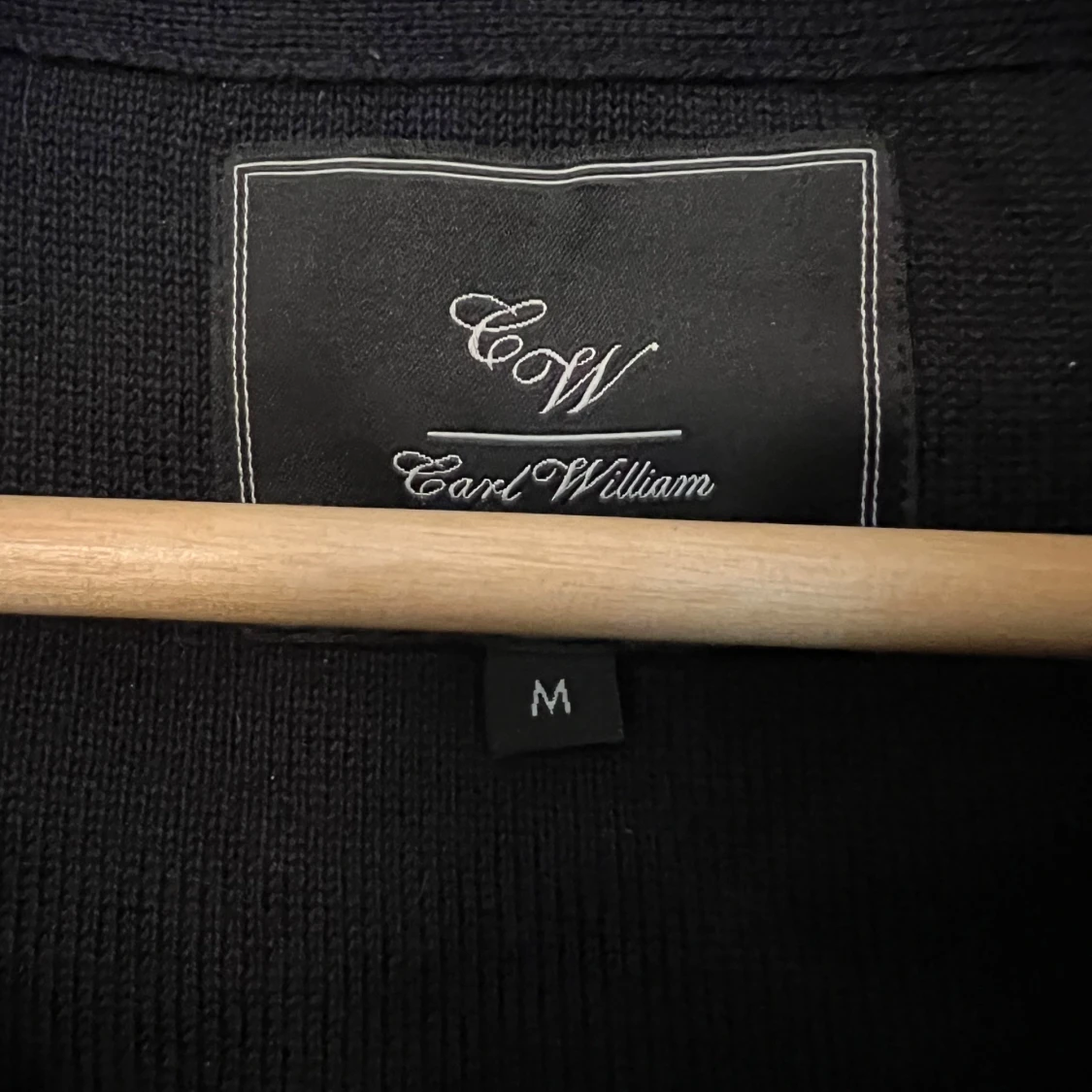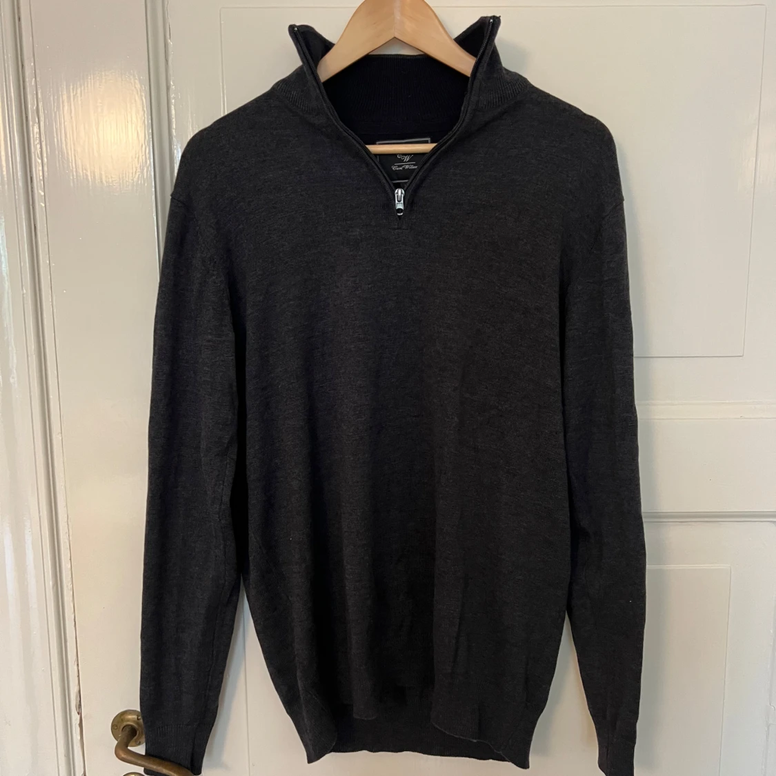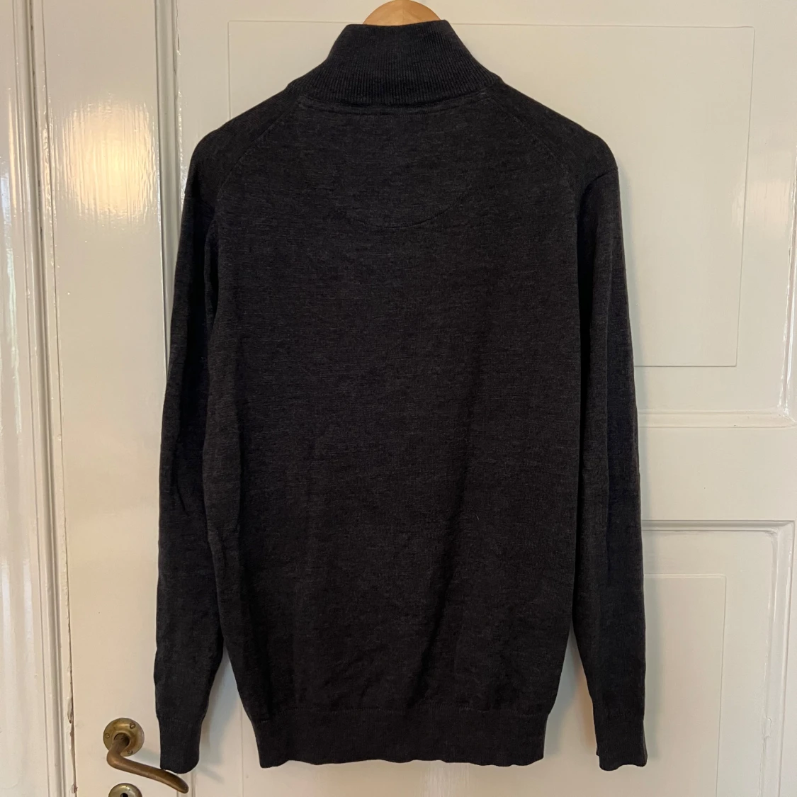 Mörkgrå stickad tröja från Carl William i storlek M. Tröjan har halv dragkedja vid halsen. Perfekt för lager-på-lager och enkel att matcha med olika outfits.