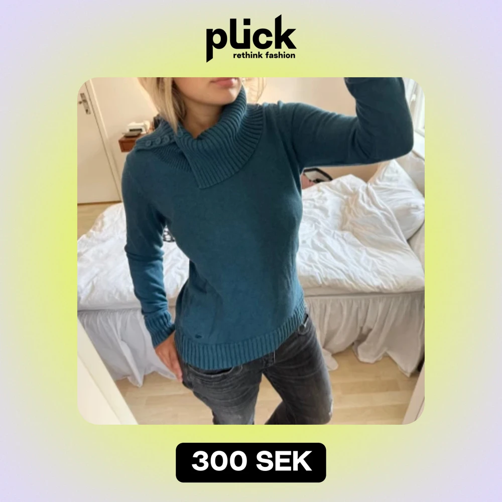 turkos stickad tröja med hög krage. från esprit i storlek S. mycket bra skick! 100% bomull