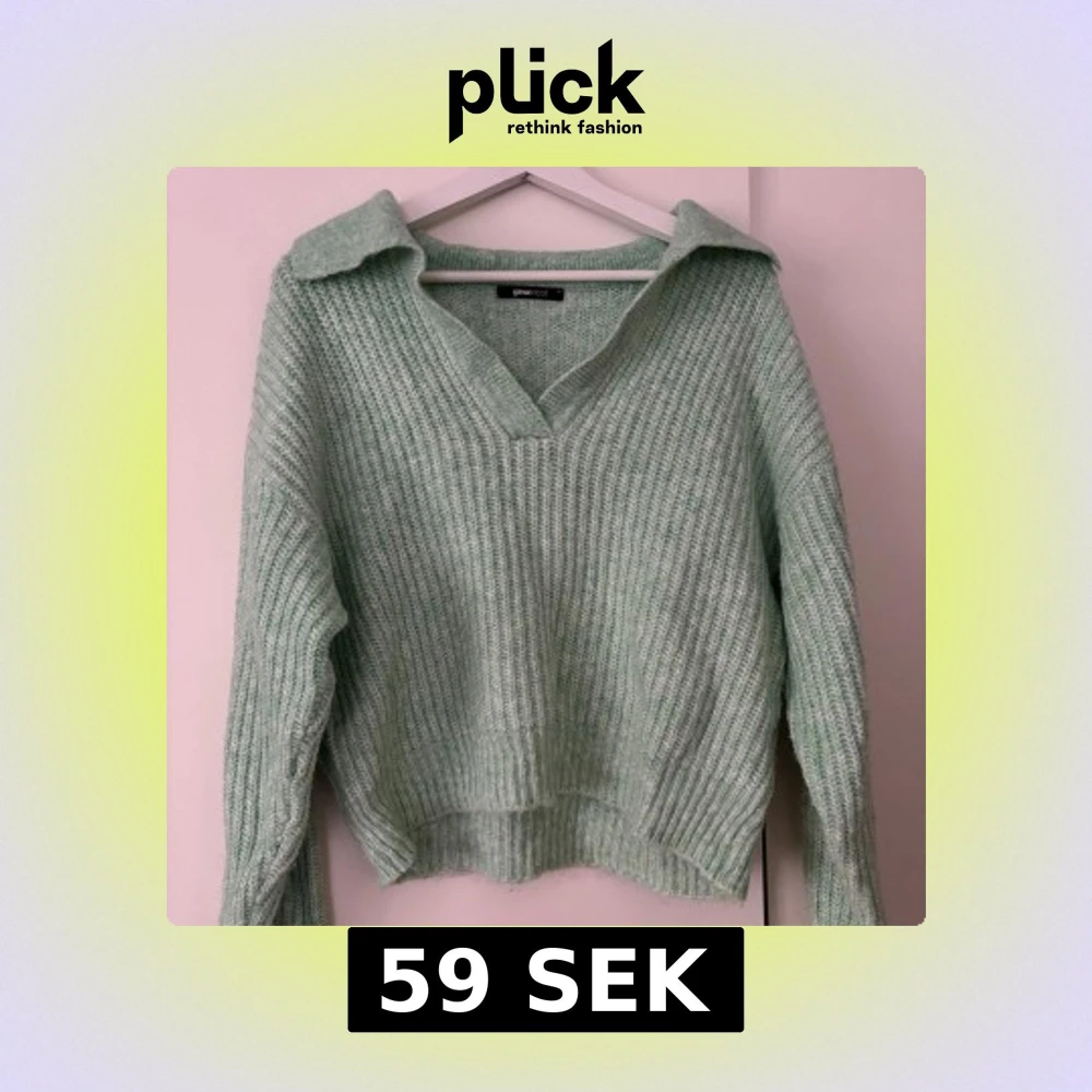 En mintgrön stickad tröja med krage från Gina Tricot 💚Lånad bild på den blå tröjan för att visa passformen ☺️