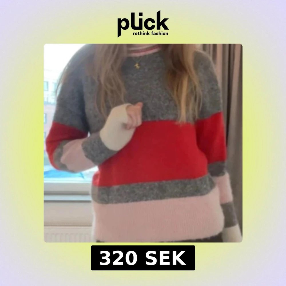 Supermysig stickad tröja från & Other Stories i grått, rött, rosa och vitt. Rund hals med ribbade detaljer och breda ränder. Materialmix med ull, polyester, alpacka och mohair för extra fluffig känsla. Den är väldigt varm, vilket är perfekt nu till vintern! Den är pyttelite nopprig men ändå i bra skick! Skriv om ni undrar något💕💕💕