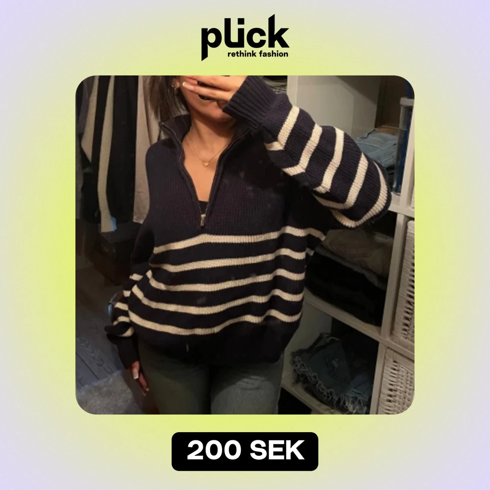 Marinblå/ vitrandig stickad tröja från Lindex strlk S, bra skick, inga skador