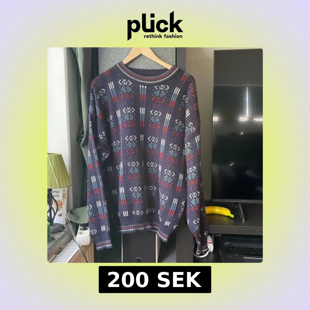 Retro stickad tröja från Celebrity Club. Tröjan är 87 cm lång, storlek L. Passar både kvinnor och män