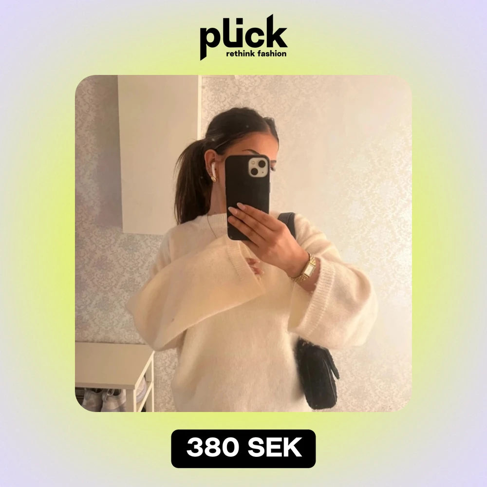 Mysig vit stickad tröja som jag nu säljer då jag fick en liknande i present. Köpte för 400:- på Vinted och använd ett fåtal gånger. Bilder lånade från ursprungliga säljaren som knappt använt den heller. Inga lappar finns i så märke och material vet jag inte. Skulle säga att den sitter som en stor S.