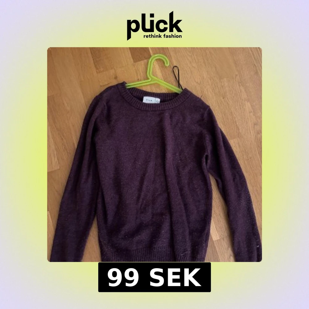 Säljer en mörklila stickad tröja från Vila med rund hals och långa ärmar. Tröjan har ribbade muddar vid ärmslut och nederkant, perfekt för dig som gillar enkel och stilren design. Den är lite nopprig men det går att fixa