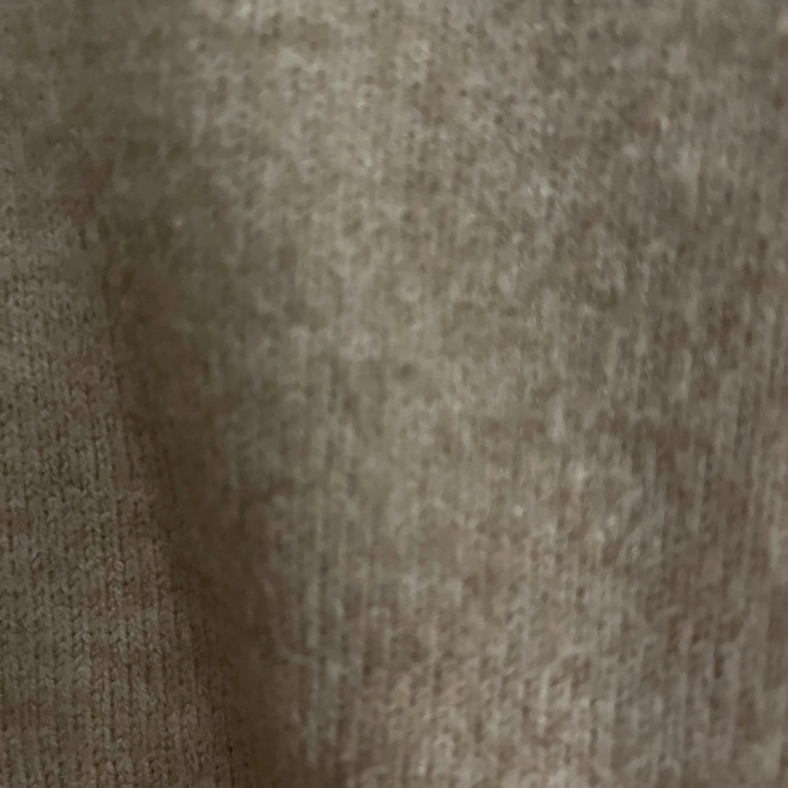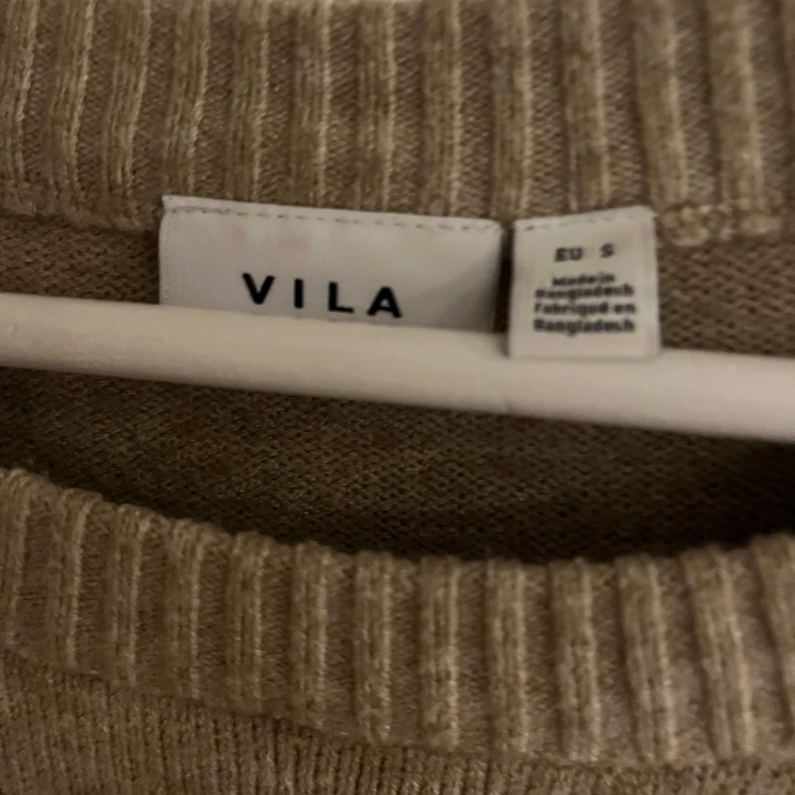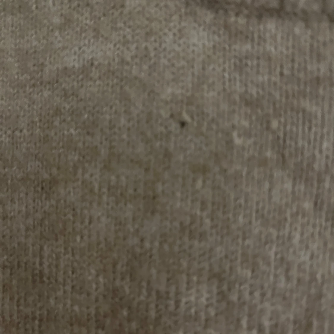 En enkel och stilren beige stickad tröja med rund halsringning och ribbade muddar vid ärmslut och nederkant. Tröjan har en normal passform och är perfekt för lager-på-lager under kyliga dagar. Mjuk och skön känsla mot huden. Ett litet hål på bröstet, syns knappt.