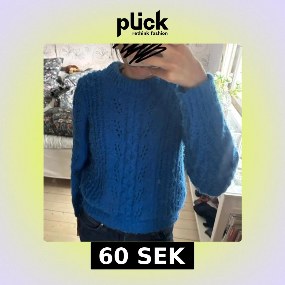 Superfin blå stickad tröja med mönster. Tröjan har långärmade ärmar och en mysig, lite fluffig känsla. Perfekt till höst och vinter. Tröjan använd max 2 gånger och är därav i mycket bra skick❤️