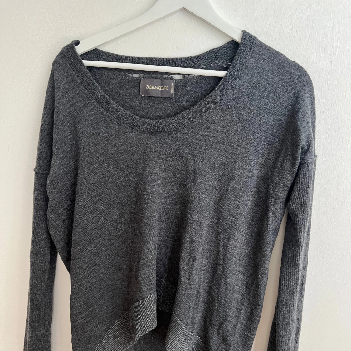 Snygg mörkgrå stickad tröja från Zadig & Voltaire i 100% merinoull. Superfin året om och har sjukt snygg passform. Den är köpt för 3 år sedan och har endast några få tecken på användning varav några av hålen som är meningen ska sitta i nacken har gått upp och blivit lite större💓 köpte för runt 2000kr! Storlek M men passar både större och mindre beroende på vilken passform man föredrar 💓