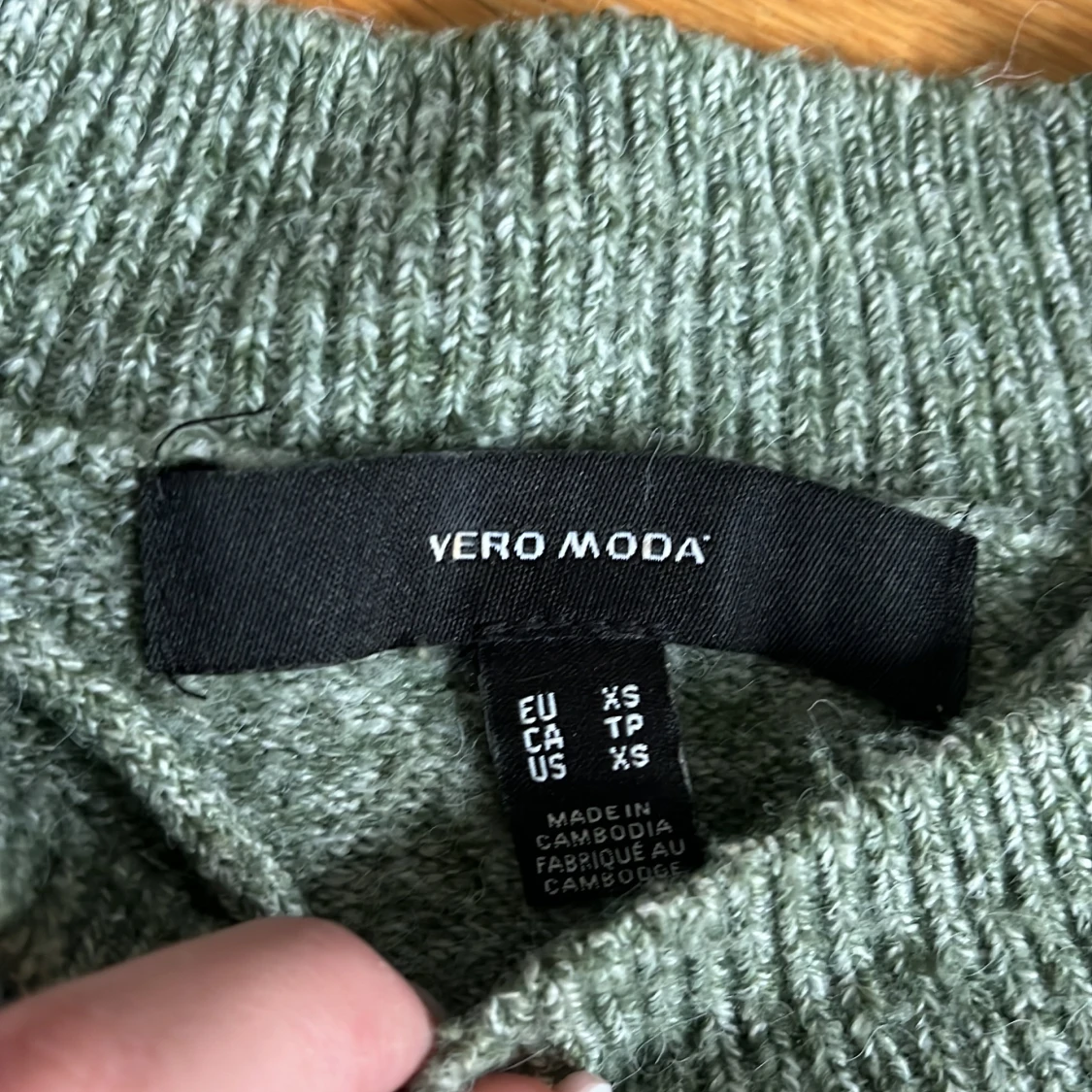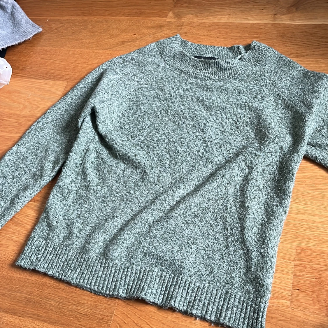 Mysig ljusgrön stickad tröja från Vero Moda i storlek XS. Den är mer grön i verkligheten, man ser färgen på andra bilden . Tröjan har rund halsringning, långa ärmar och ribbade muddar vid ärmslut och nederkant. Perfekt för lager-på-lager och chill dagar.