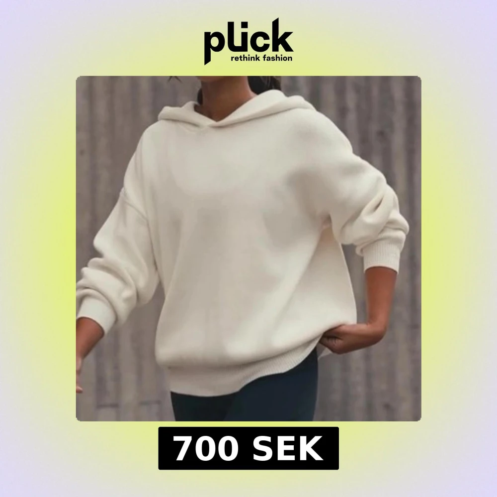 Säljer en tung och lyxig stickad vit hoodie med en avslappnad passform. I strl S, knappt använd, nypris: 1000kr