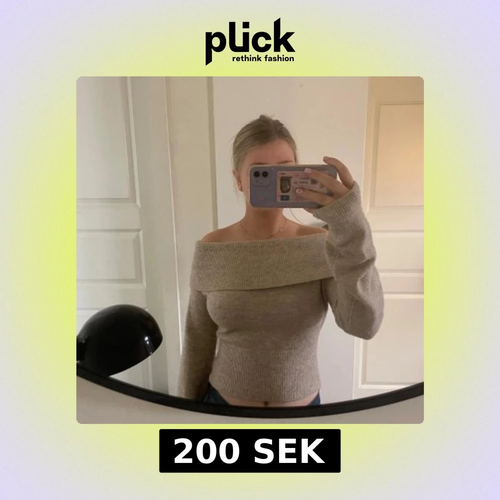 Säljer en snygg beige offshoulder tröja från Weekday. Tröjan är ribbad och har långa ärmar, något croppad i modellen, knappt använd så i väldigt fint skick