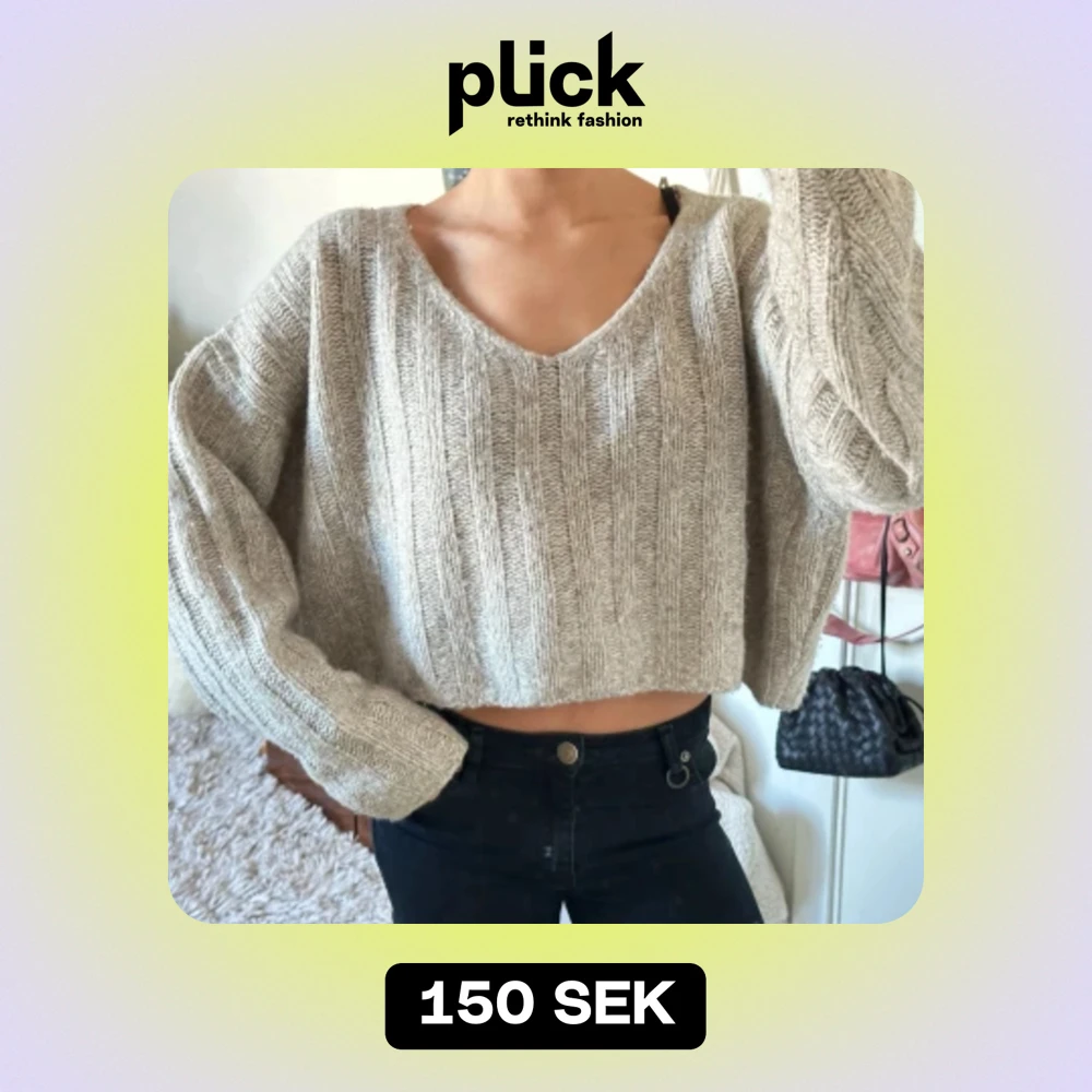 Säljer en supermysig beige stickad tröja med v-ringning. Den är croppad och har långa ärmar, perfekt för hösten. Från zara storlek L, brukar ha xs/s för referens! 61%ull 21%akryl och 18% nylon, sticks inte alls på mig!