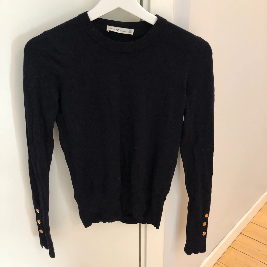 Stickad långärmad tröja från zara med guldiga detaljer 💕köparen står för frakten
