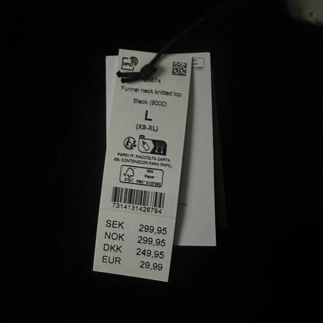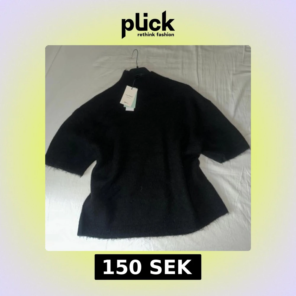 Svart stickad tröja från Ginatricot i storlek L med funnel neck och korta ärmar. Tröjan har en mjuk och fluffig känsla, perfekt för lager-på-lager. Enkel och stilren design som funkar till många outfits. Aldrig använd, därav prislappen på! Hör av dig vid frågor 🥰