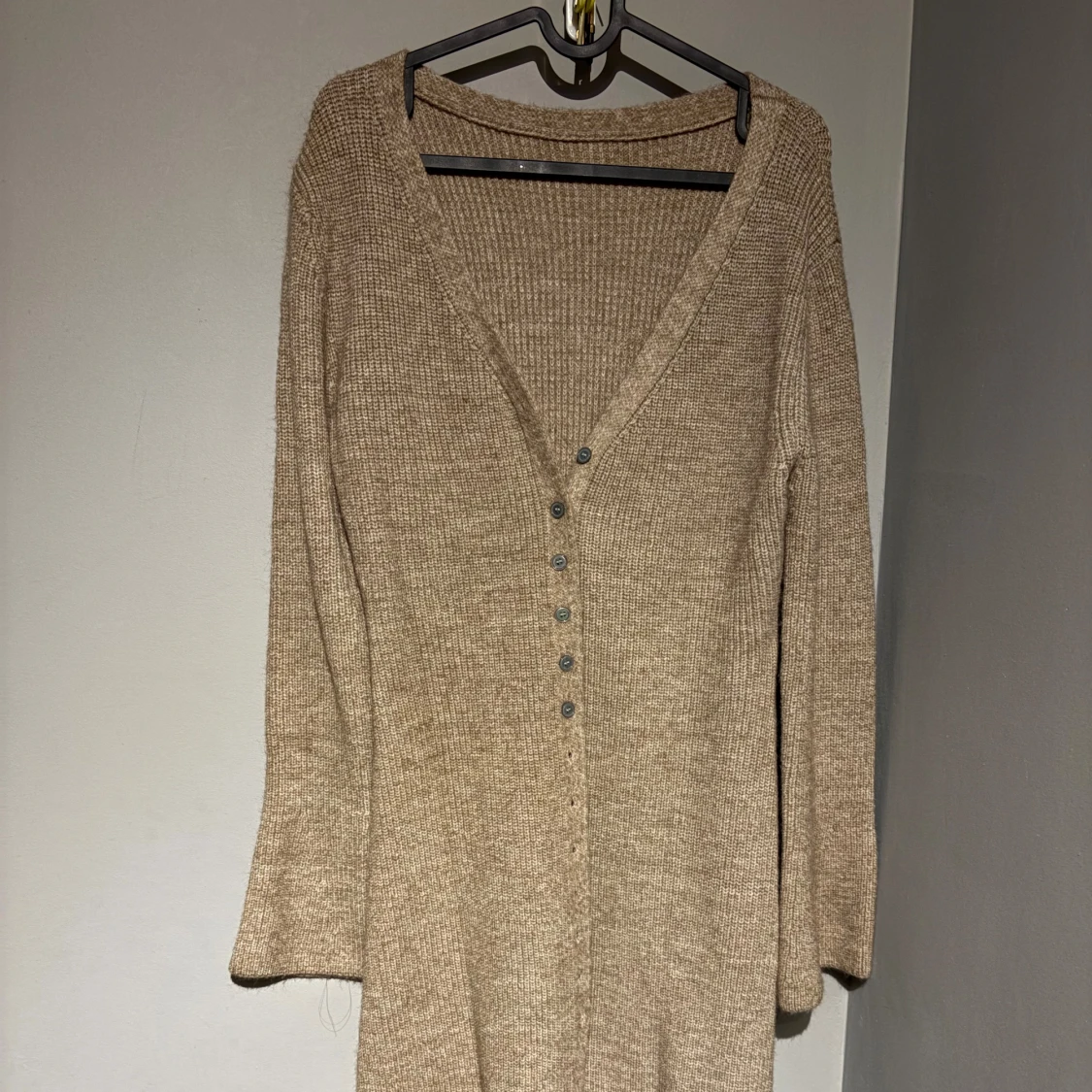 Oanvänd kofta klänning i storlek L men funkar bra som M. Köpte den från primark. Perfekt för dig som gillar chill och stilren look med en touch av cozy vibes.