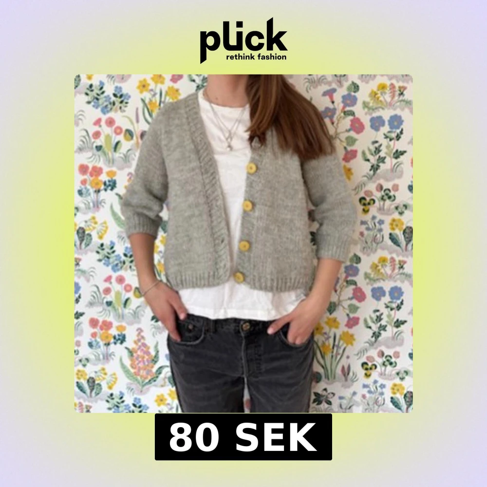 Säljer en superfin grå stickad kofta med trekvartsärmar och gulliga gula knappar. Perfekt för både vår och höst när det är lite kyligt. Den är croppad och har en mysig, loose passform. Passar perfekt över en t-shirt eller blus för en avslappnad look. Köpt second hand och misstänker att den är hemstickad. Står ingen storlek men jag brukar ha 36/38 som referens🙌🏼den är lite nopprig