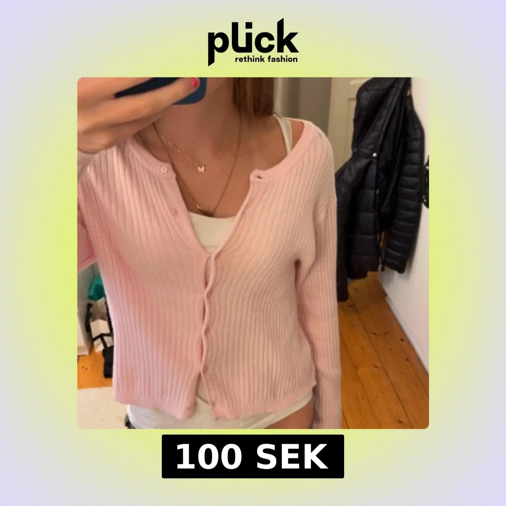 Supersöt ljusrosa kofta från 157 i ribbstickad bomull!! 💞💕 Perfekt att slänga över ett linne när det är lite kyligt ute🩷en knapp är lite trasig och den har en svart fläck på axeln men går säkert bort med vanish!🩷