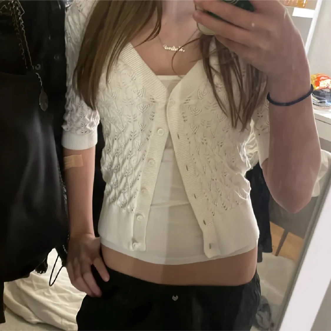 Säljer en vit stickad kofta från Kappahl i storlek M. skulle säga att den passar allt mellan xs-m, då jag brukar ha xs. Priset går självklart att diskuteras🩷