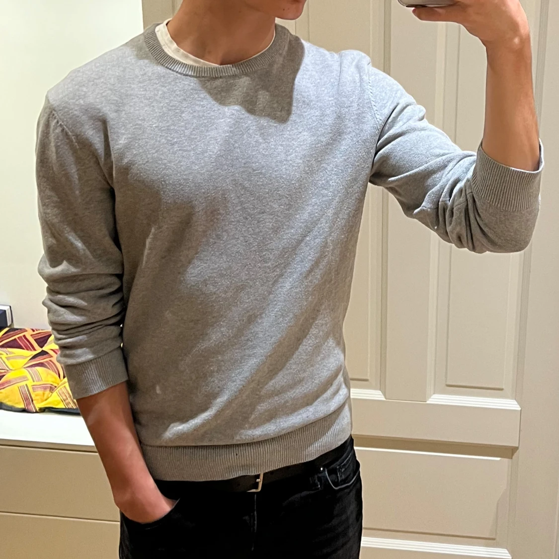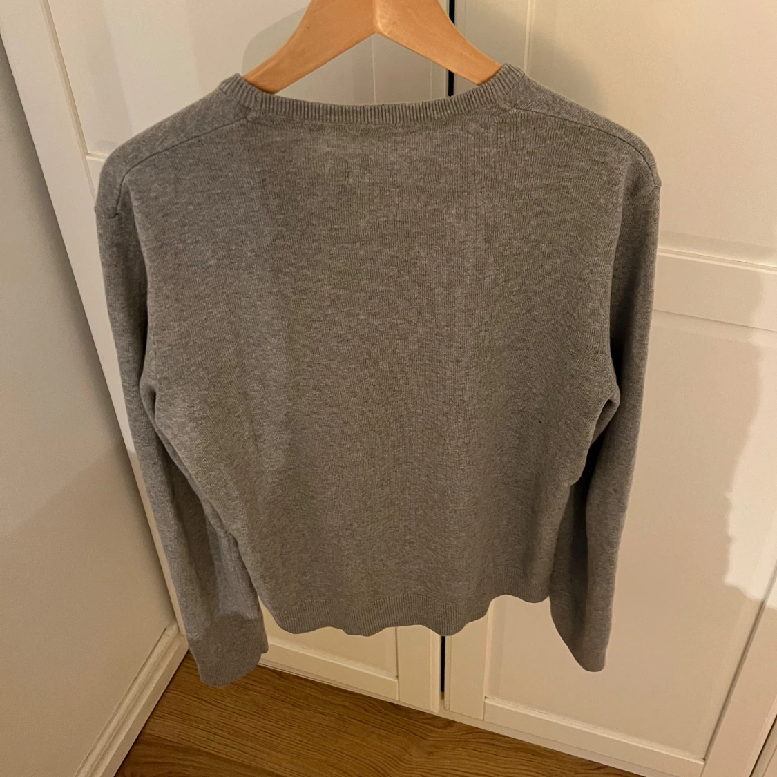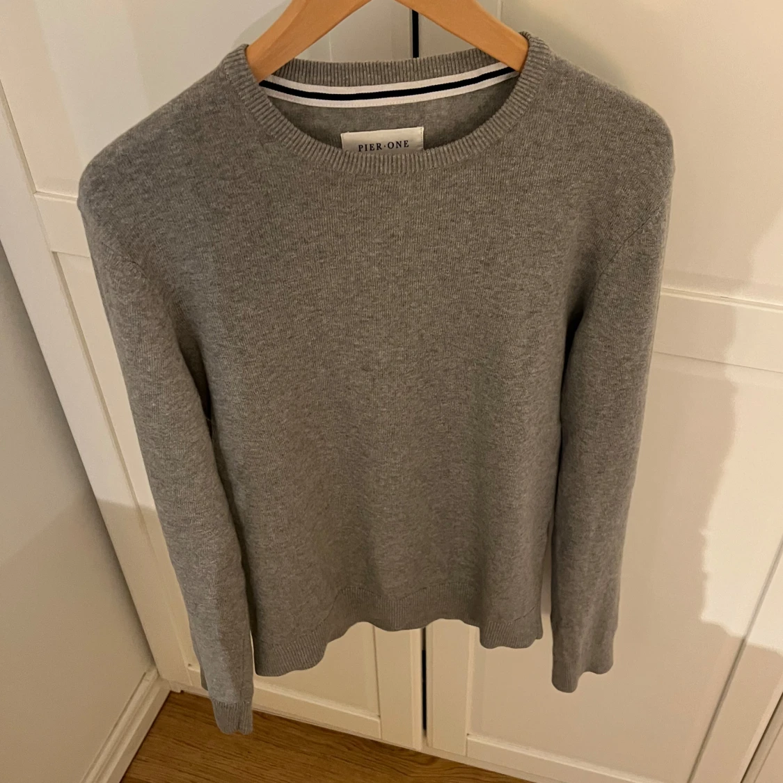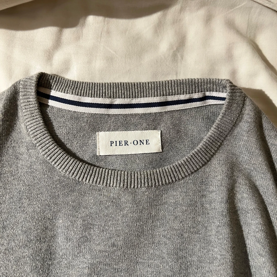 Säljer en stilren grå stickad tröja från Pier One. Tröjan har rund halsringning och ribbade muddar vid ärmslut och nederkant. Perfekt för lager-på-lager och passar till det mesta i garderoben. 100% bomull. Sparsamt använd. Skriv vid minsta fundering🤙