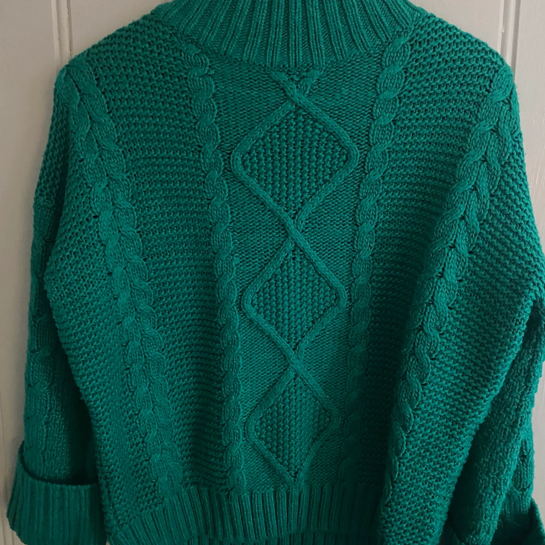 Grön stickad tröja från Amisu (New Yorker)💕. Den är i storlek S och är mer grön i verkligheten, ungefär lika grön som på bild 3. Andvänd ett fåtal gånger och har inga skador. Tröjan är lite längre runt halsen och har ”naturligt” uppvikta ärmar. Kontakta mig vid köp💕