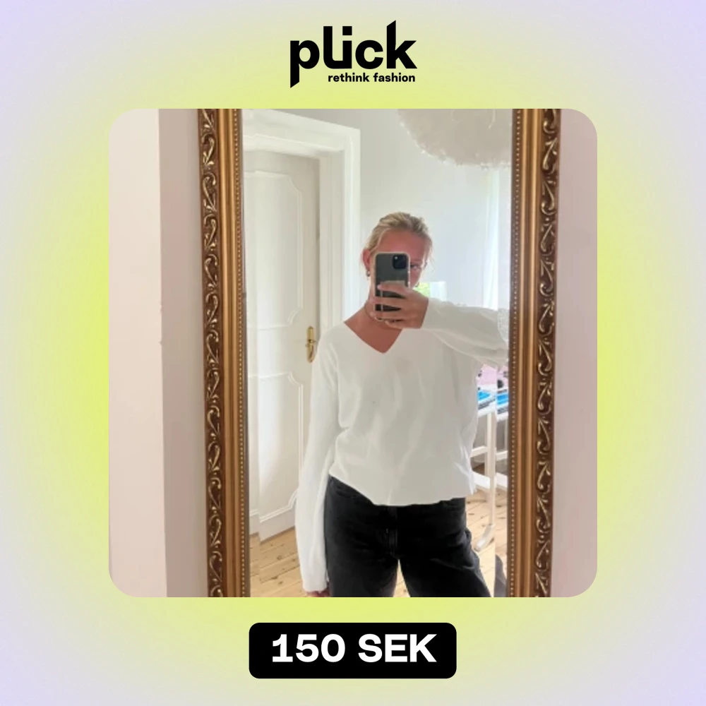 fin vit tröja från h&m i v-ringad hals i ett material som påminner om en sweatshirt❣️⭐️