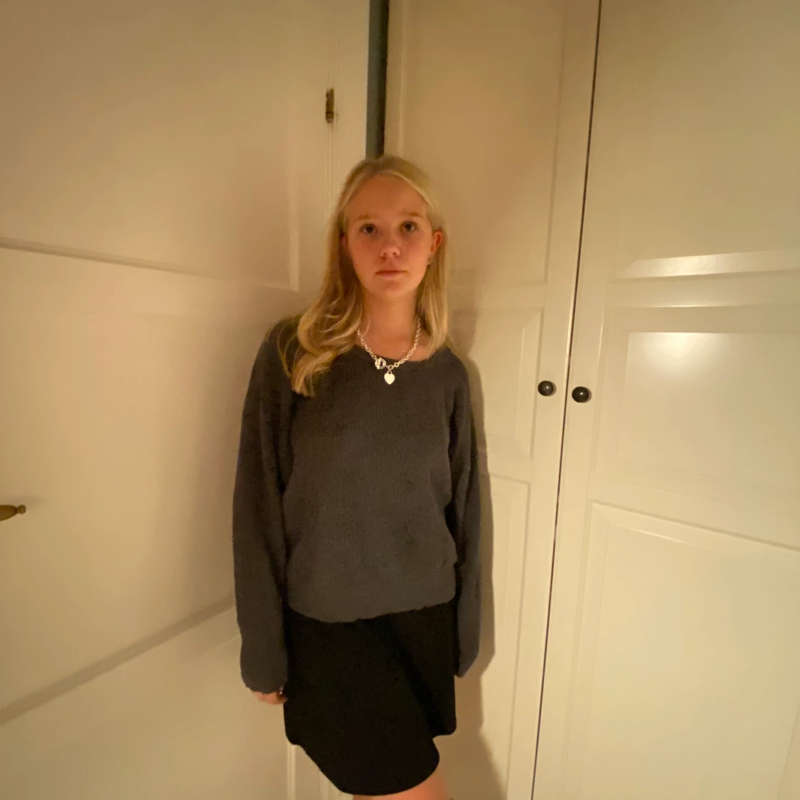 Grå stickad tröja med asfin knytning på baksidan. Passar verfekt till höst och vinter outfits. Väldigt mjukt och skönt material. 🐦