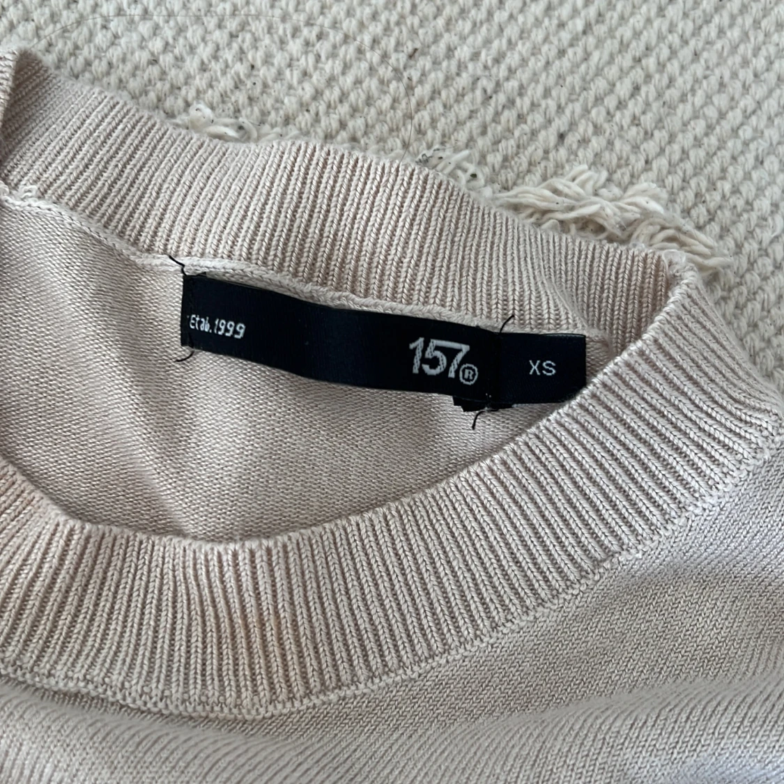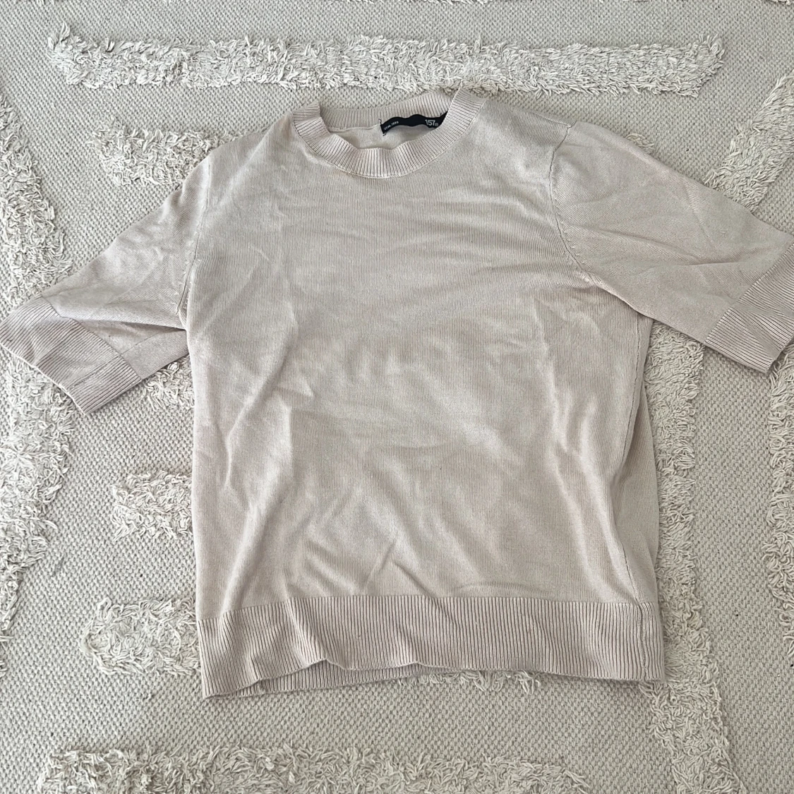 Snygg beige stickad tröja från lager157 i storlek XS. Tröjan har korta ärmar och ribbade detaljer vid hals, ärmslut och nederkant. Perfekt för dig som gillar enkel och clean stil med en neutral färg som passar till allt.
