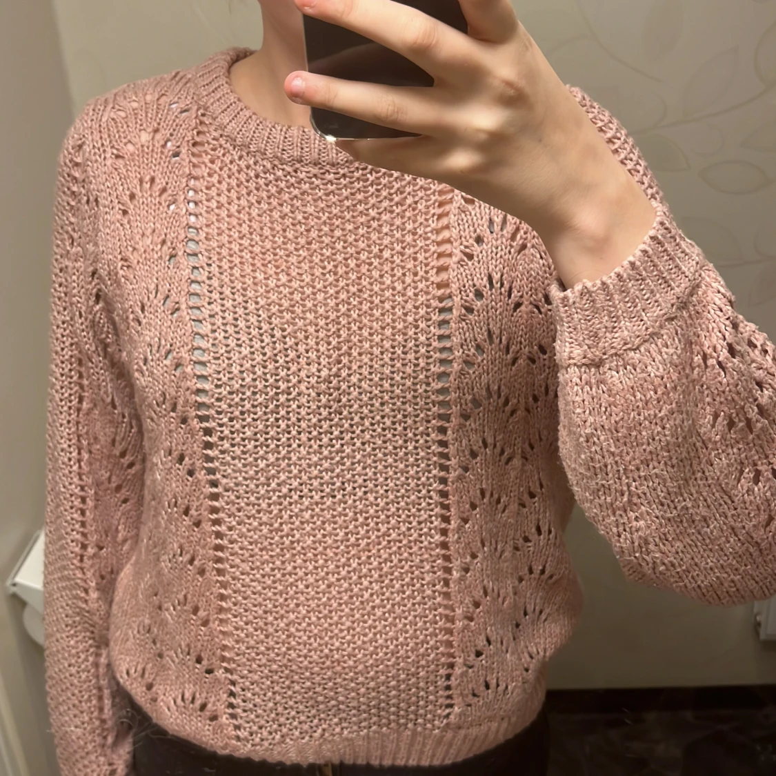 En ljusrosa stickad tröja som bara är använd några gånger och den är i mycket bra skick
