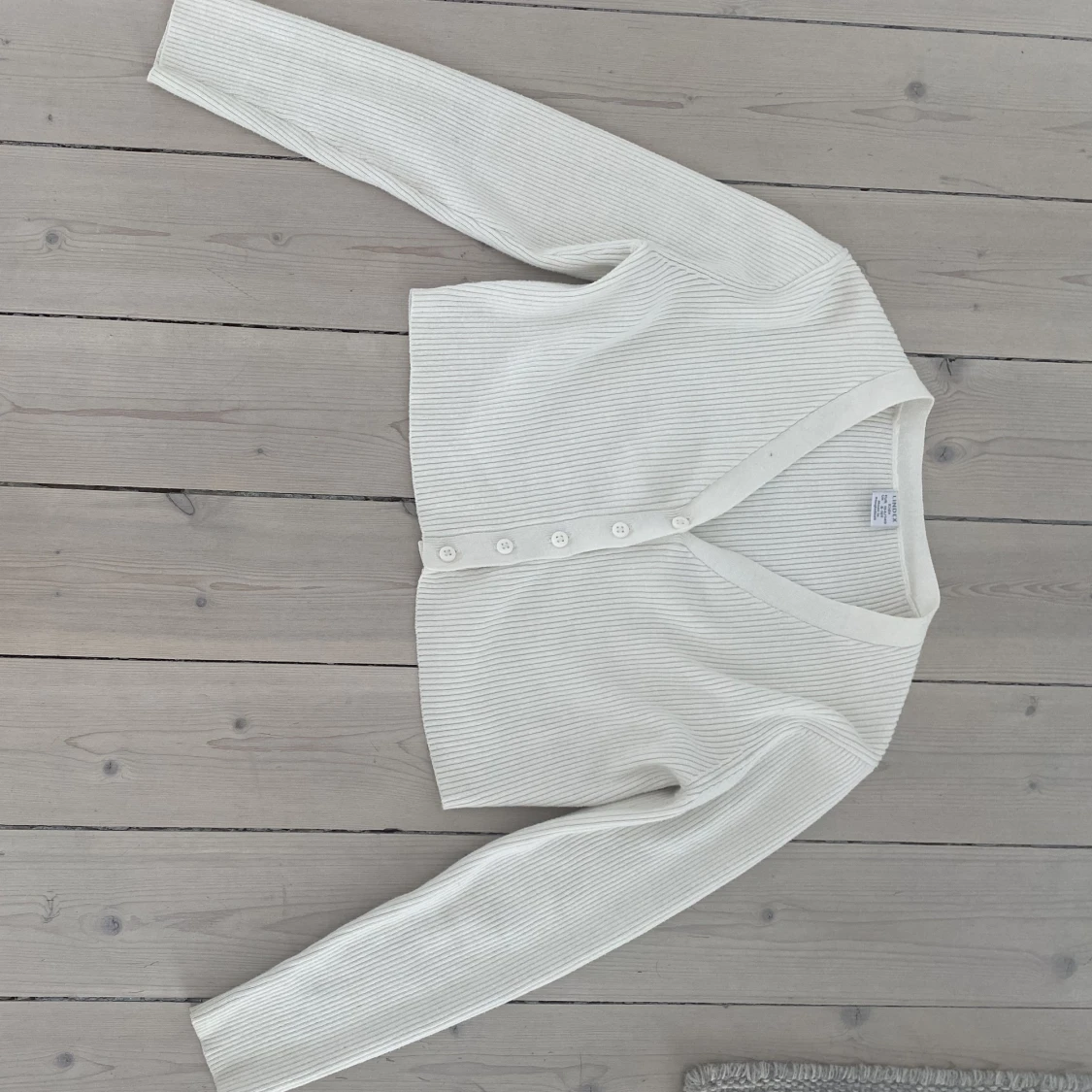 Säljer denna ribbstickade koftan från Lindex, den är créme vit🤩💗storleken är 134-140 men passar även XS.