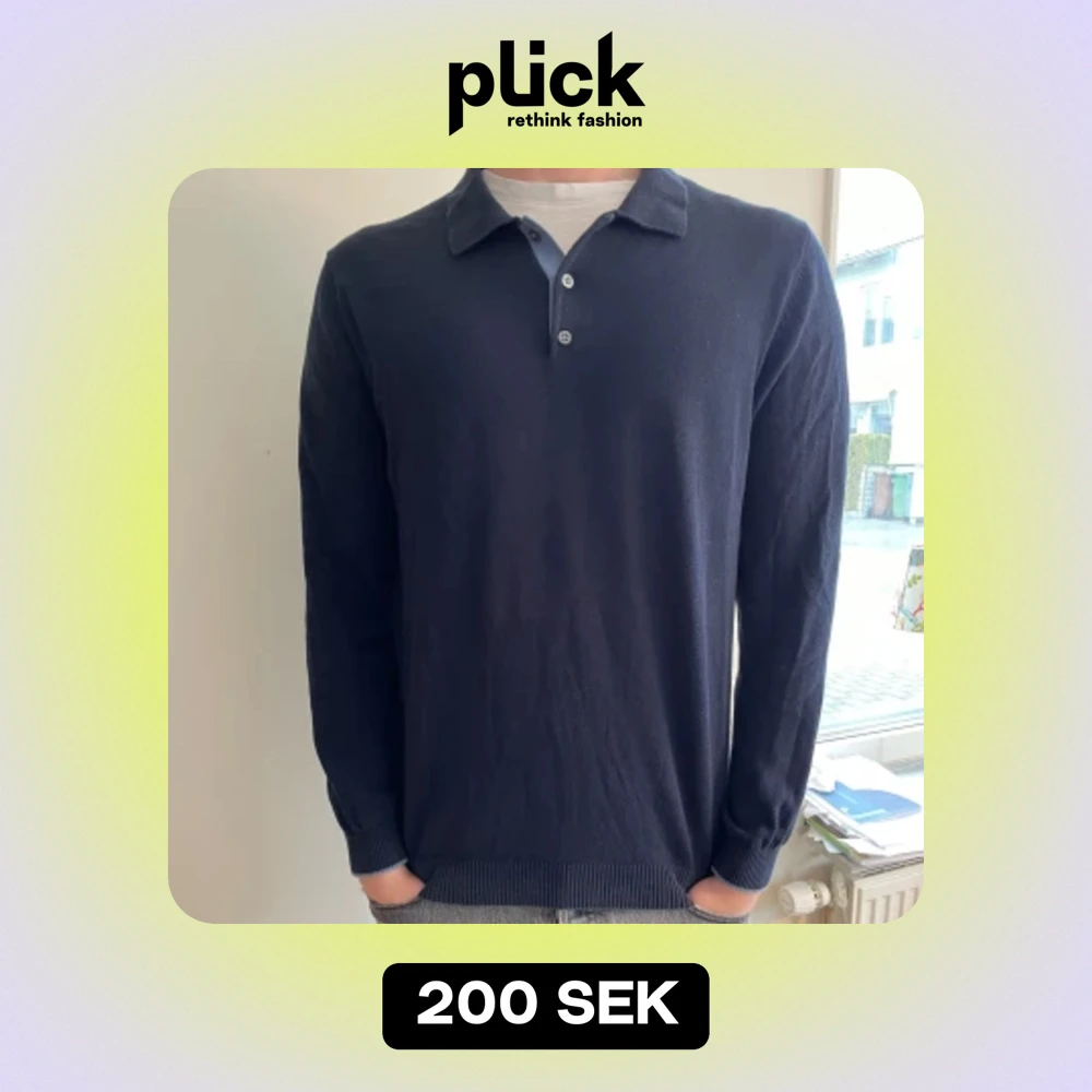 Snygg långärmad mörkblå piké från massimo dutti i bra skick, storlek large.