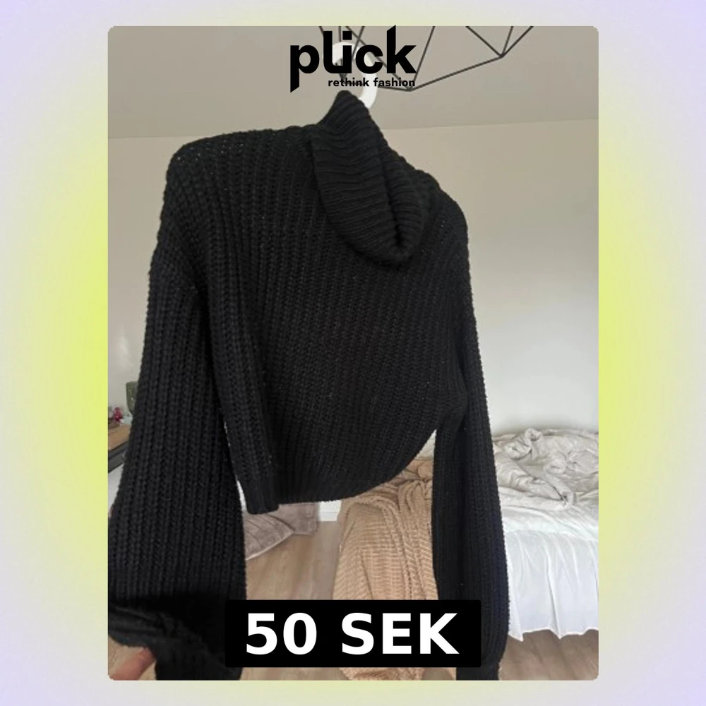Jätte fin och mysig stickad polo tröja som är lite kortare till magen. Passar perfekt till ett par högmidjade jeans till exempel. Tecken på användning och lite nopprig på ärmarna men fortfarande fin och hel. Normal i storleken.