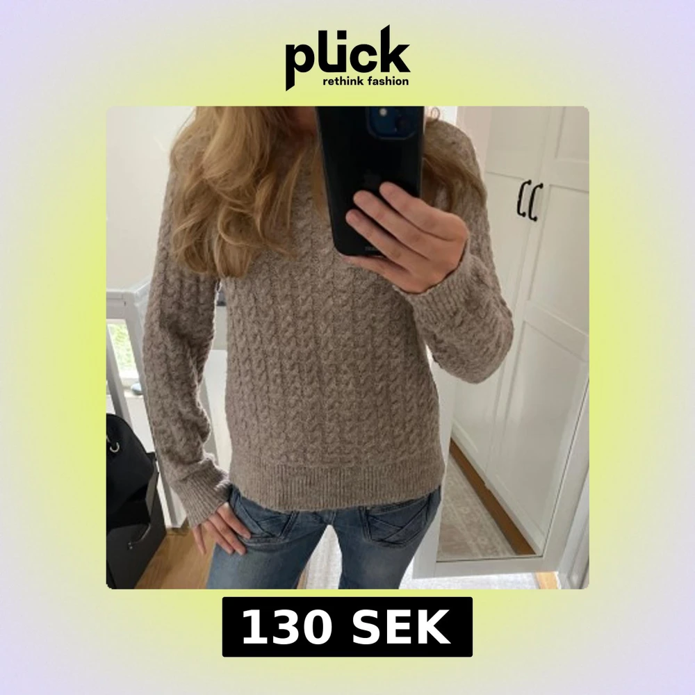 Mysig beige stickad tröja med klassiskt kabelstickat mönster från Nelly! Stolen XS men passar S. Använd ca 2 ggr, helt nytt skick och inga tecken på att den ens har används.
