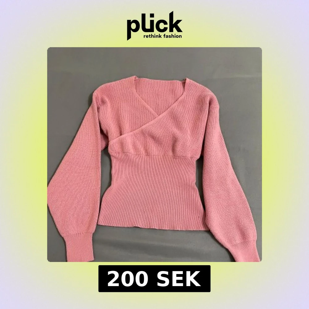 Säljer en söt rosa omlottopp med långa ärmar. Toppen har en ribbad struktur och en smickrande passform som framhäver midjan.