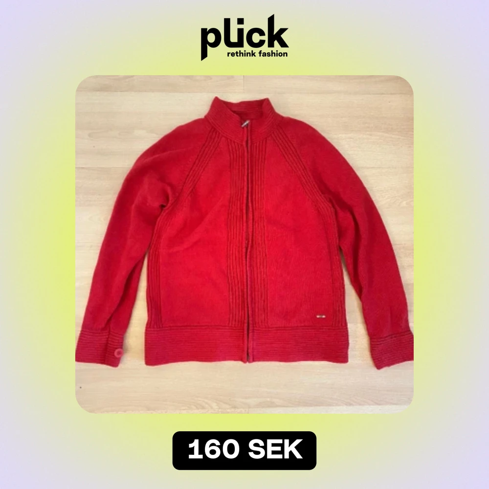 super gullig röd stickad zip up kofta! Skriv för bild på