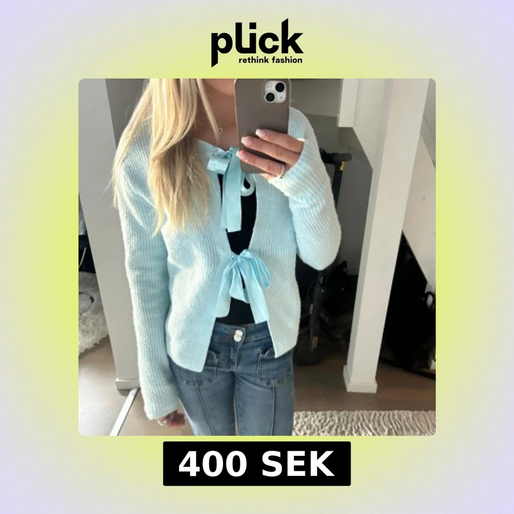 Säljer en söt ljusblå ribbad kofta med knytband framtill. Koftan har långa ärmar och en mjuk, bekväm tröja. Som är helt ny🤍