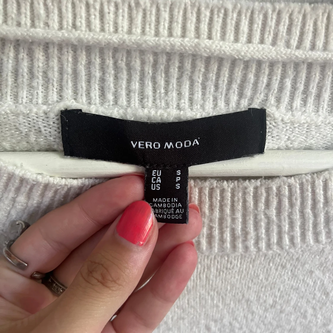 Supermjuk vit stickad tröja frĂ„n Vero Moda med rund halsringning och ribbade muddar. Perfekt basic med relaxed fit och lĂ„nga Ă€rmarđ Kan finnas tecken pĂ„ anvĂ€ndning