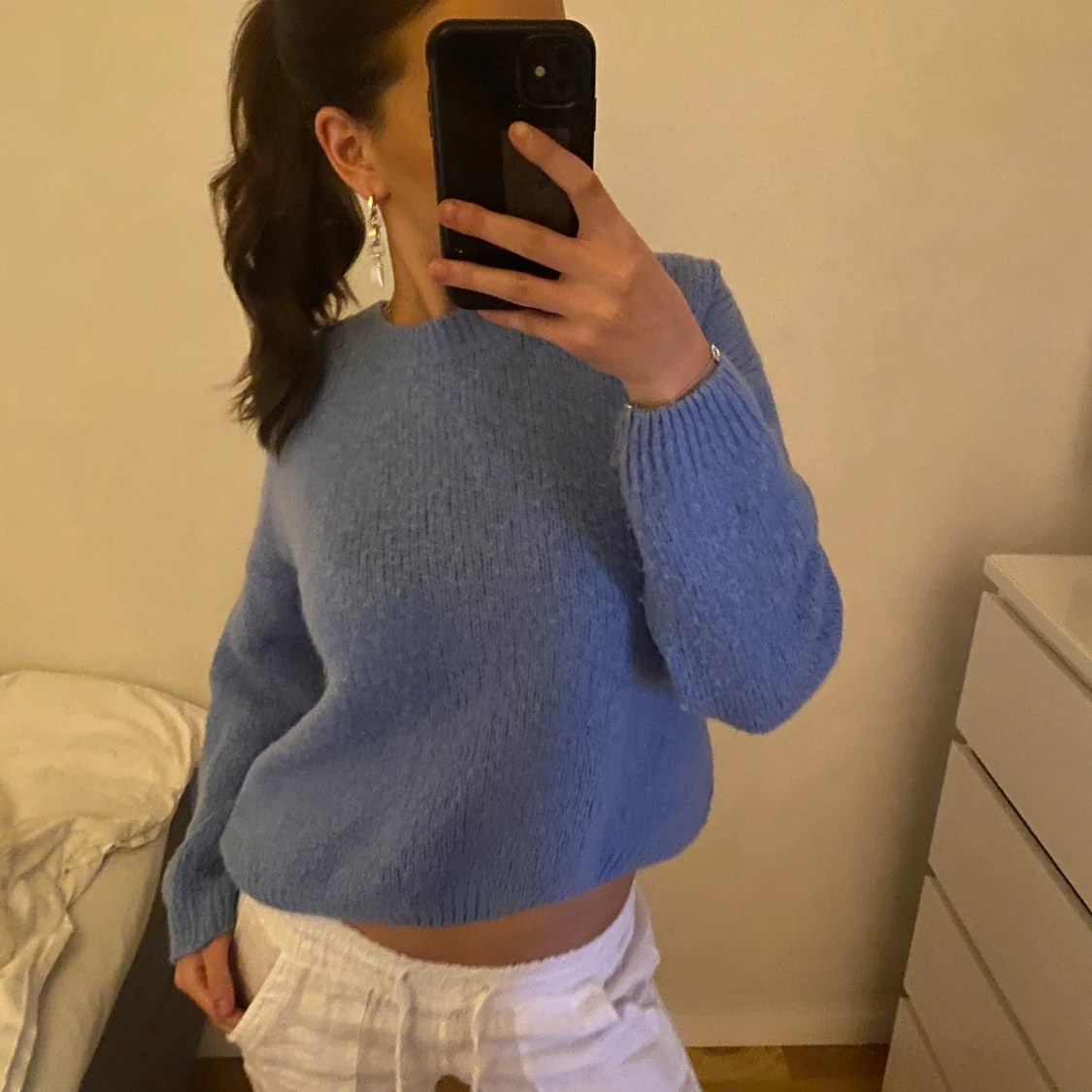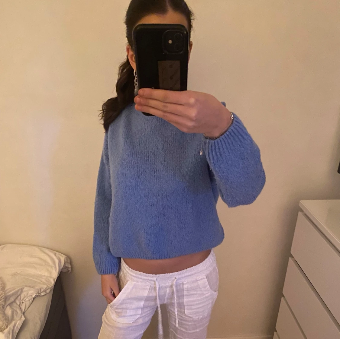 Så fin blå stickad ulltröja, älskar denna!!!! Så cool❤️❤️