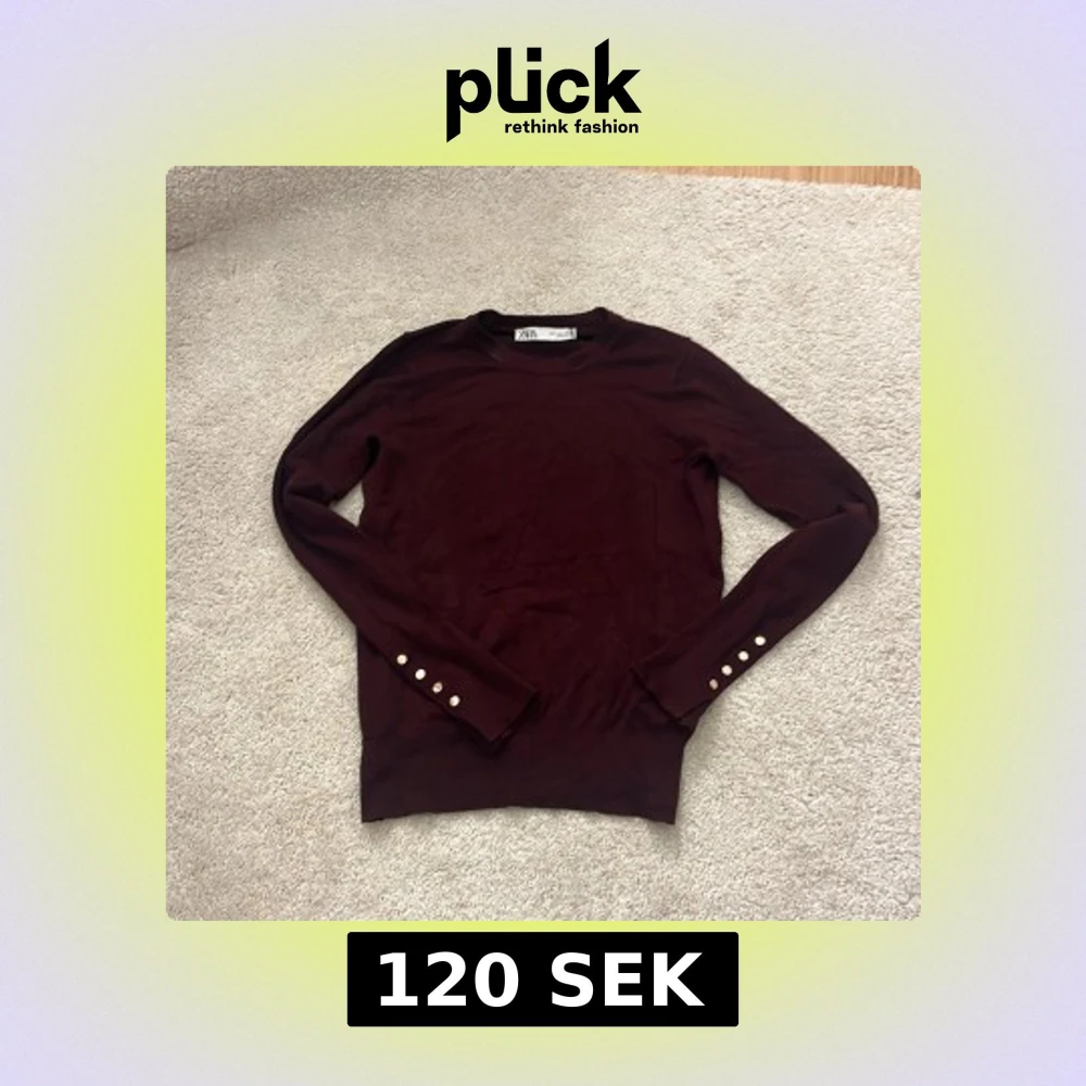 Vinröd finstickad tröja från Zara med långa ärmar och guldiga knappar på ärmarna.